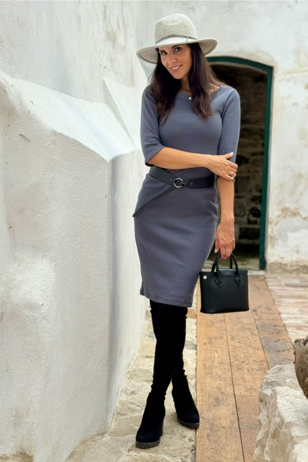 Hrubší úzké žebrované šaty Klasik - šedá - krátké 100 cm - vel. XS - skladem