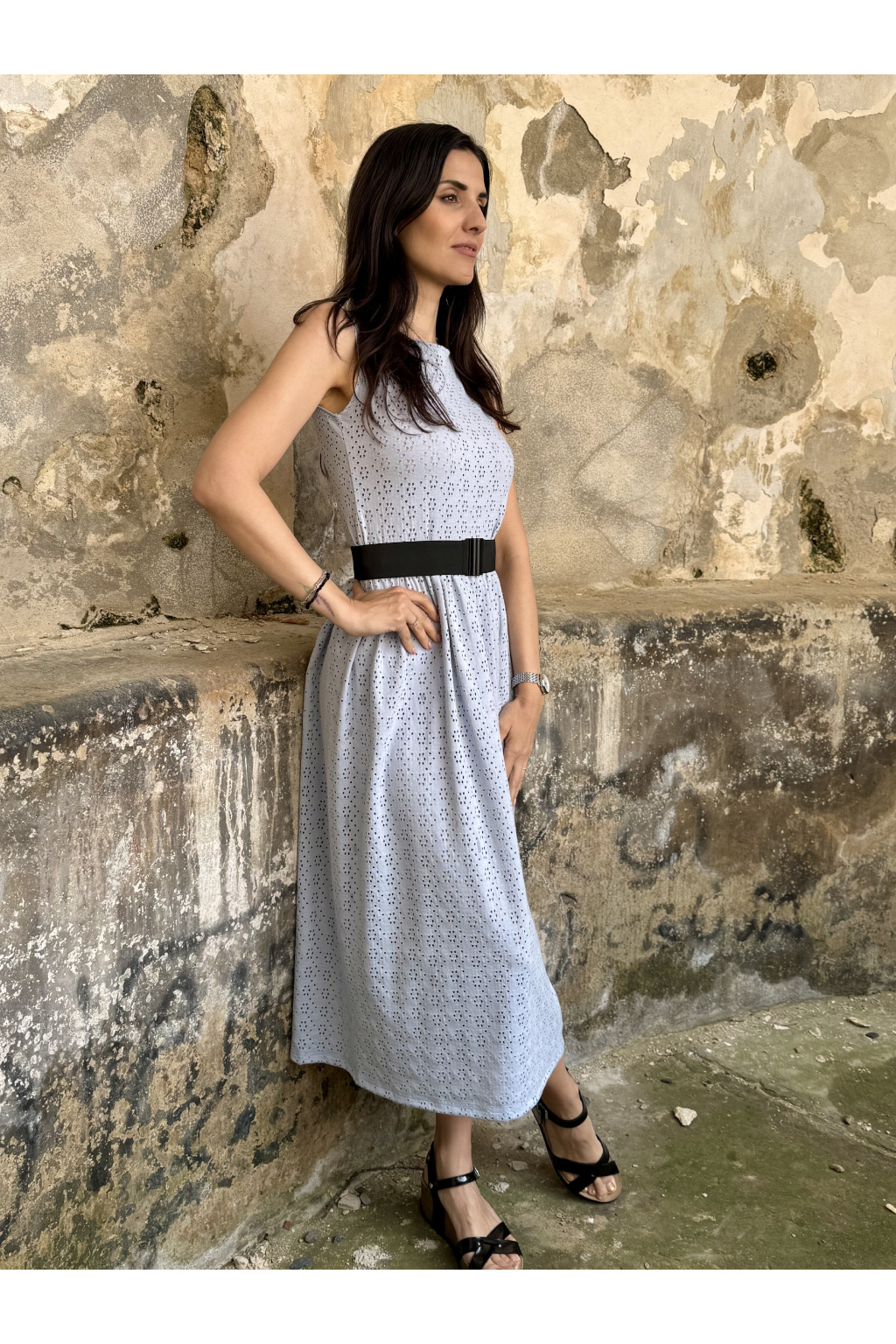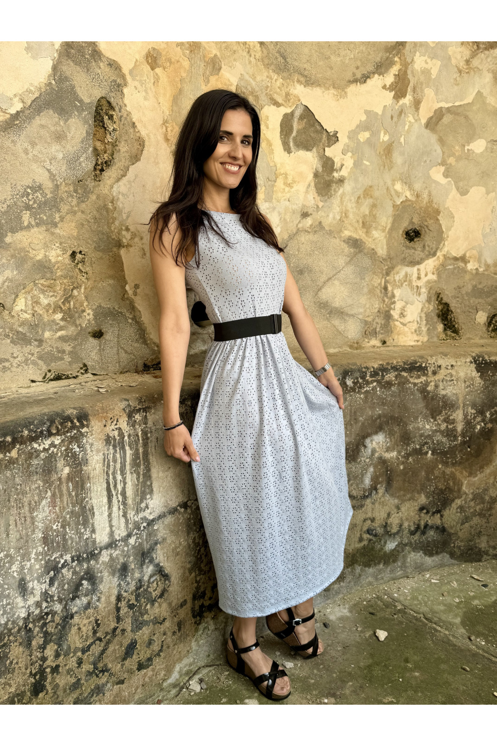 Madeirové šaty Ava - světle modrá - midi 120 cm - vel. S - skladem