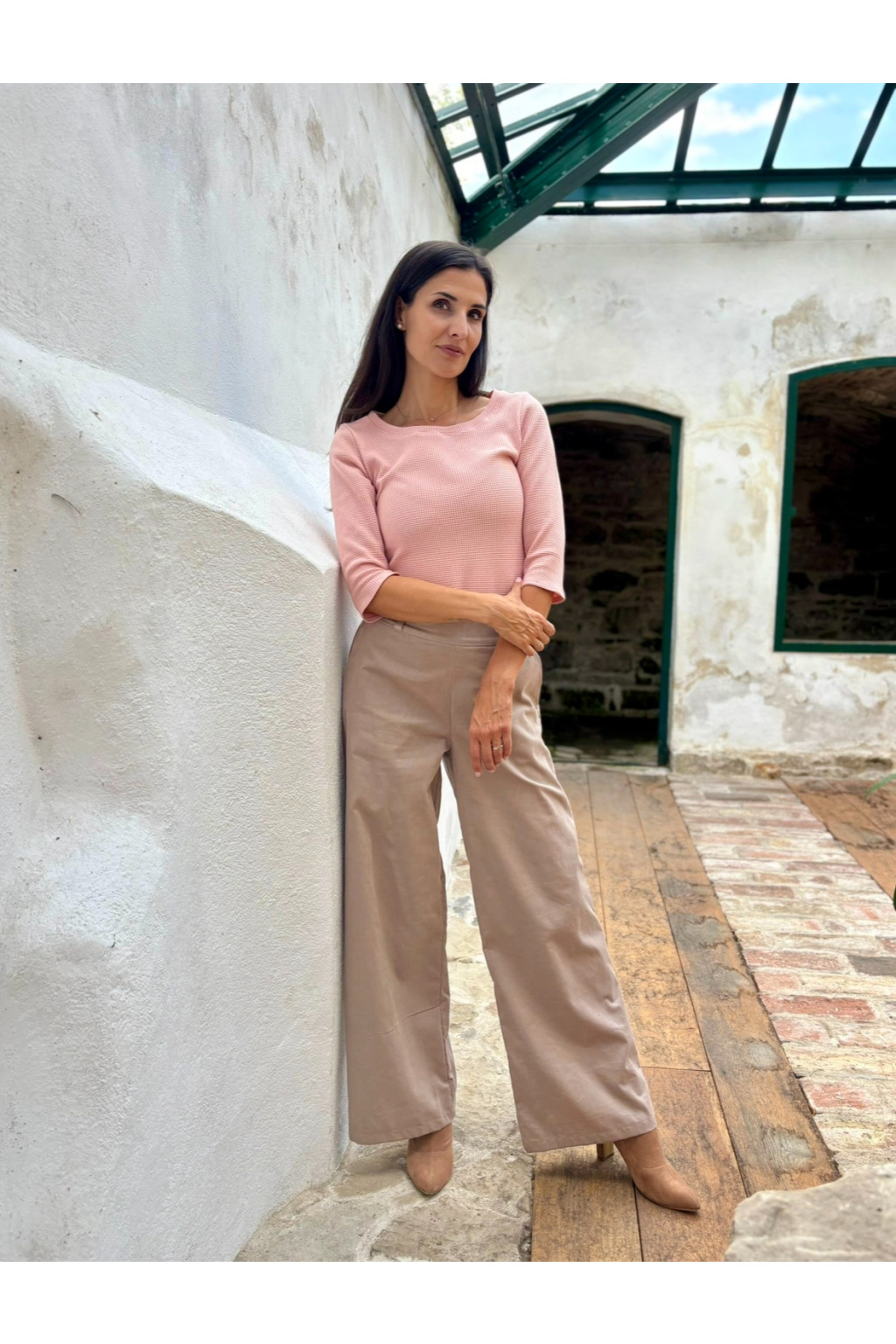 Manšestrové široké kalhoty - písková - vel. S - skladem