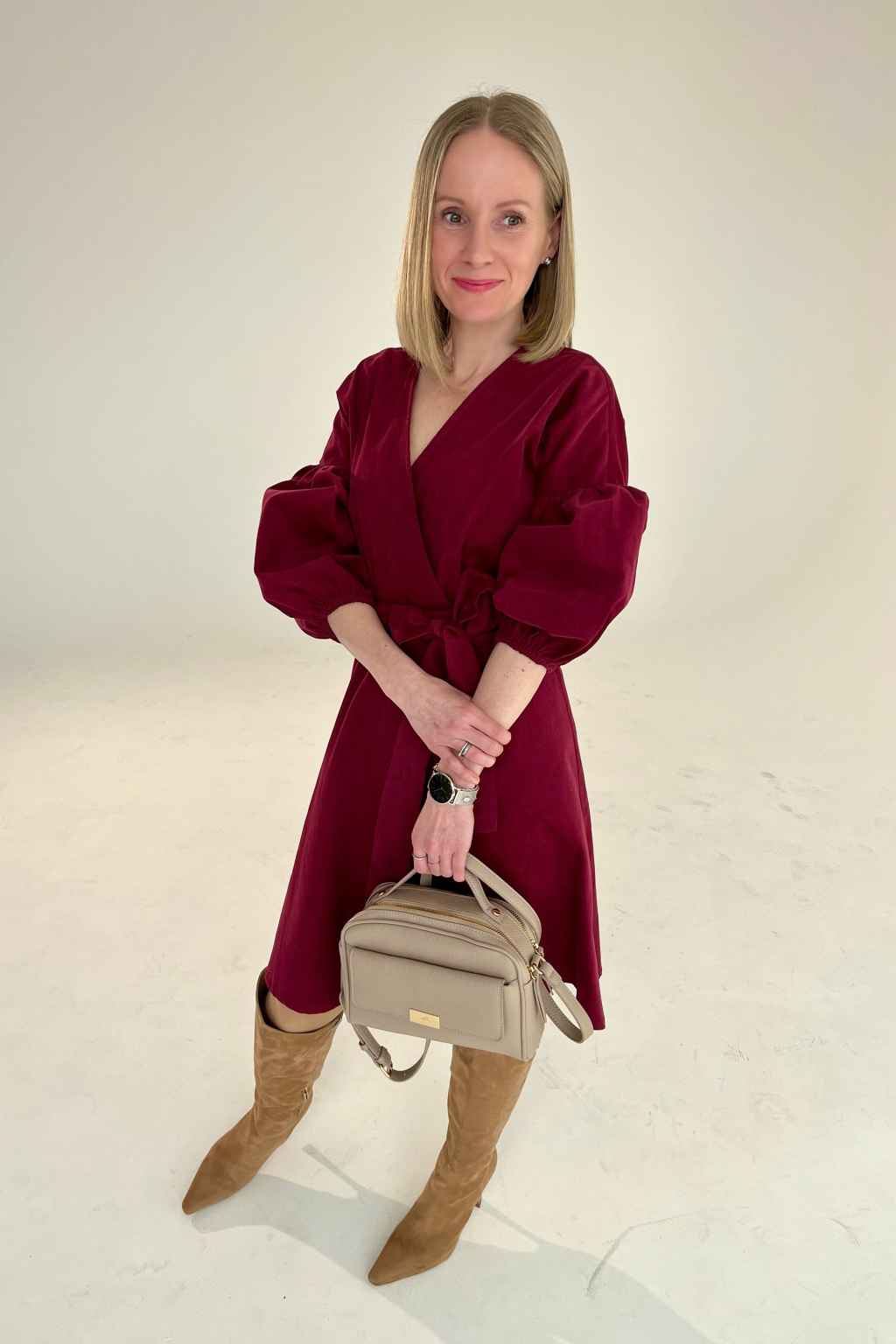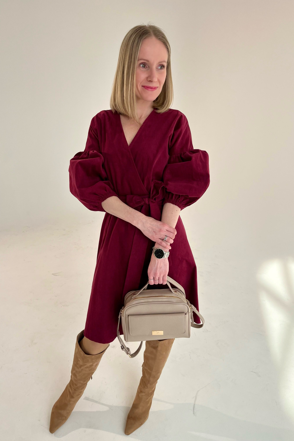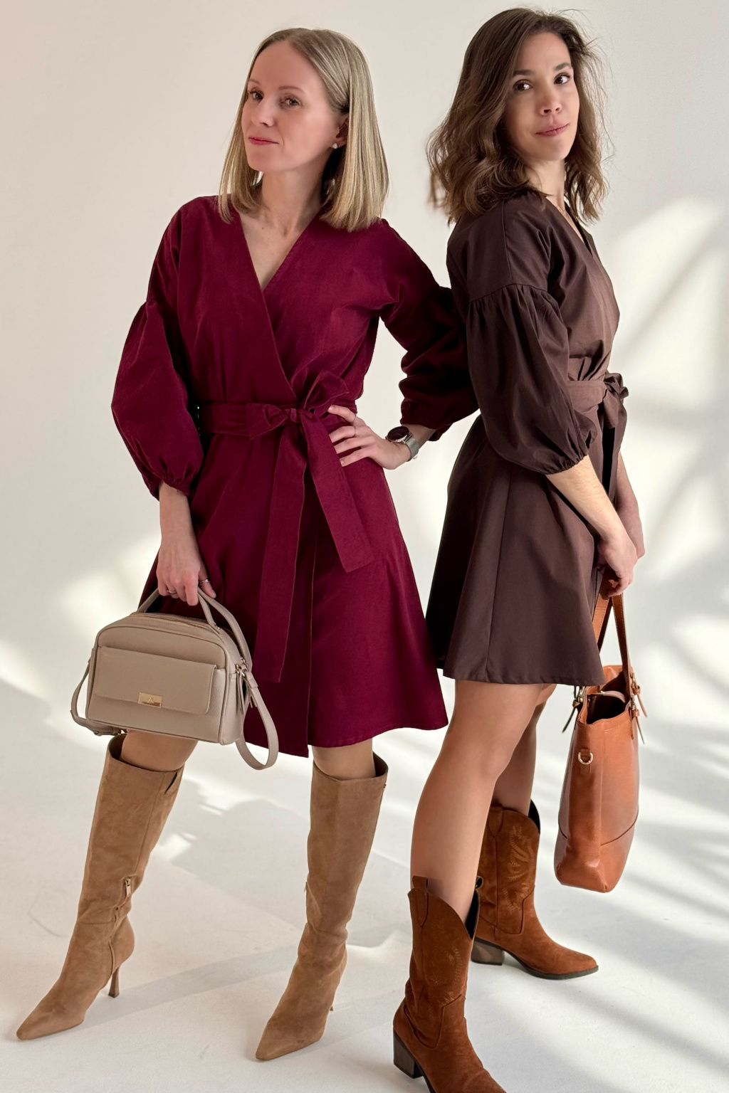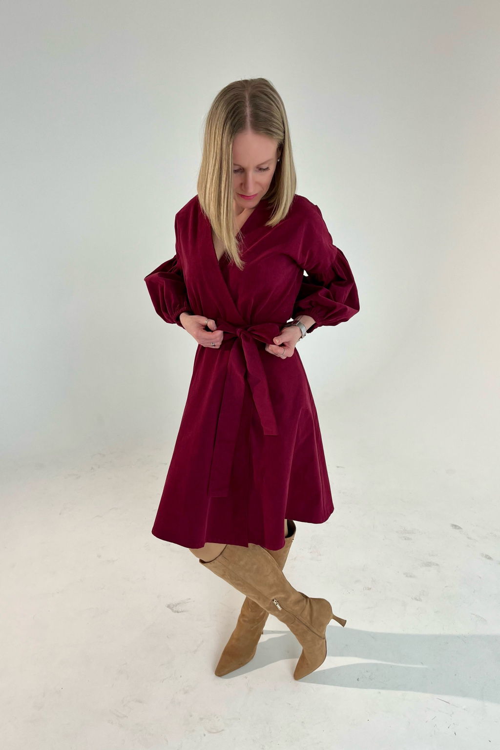 Manšestrové zavinovací šaty Mirabela - fuchsiová - krátké 95 cm - vel. XS - skladem