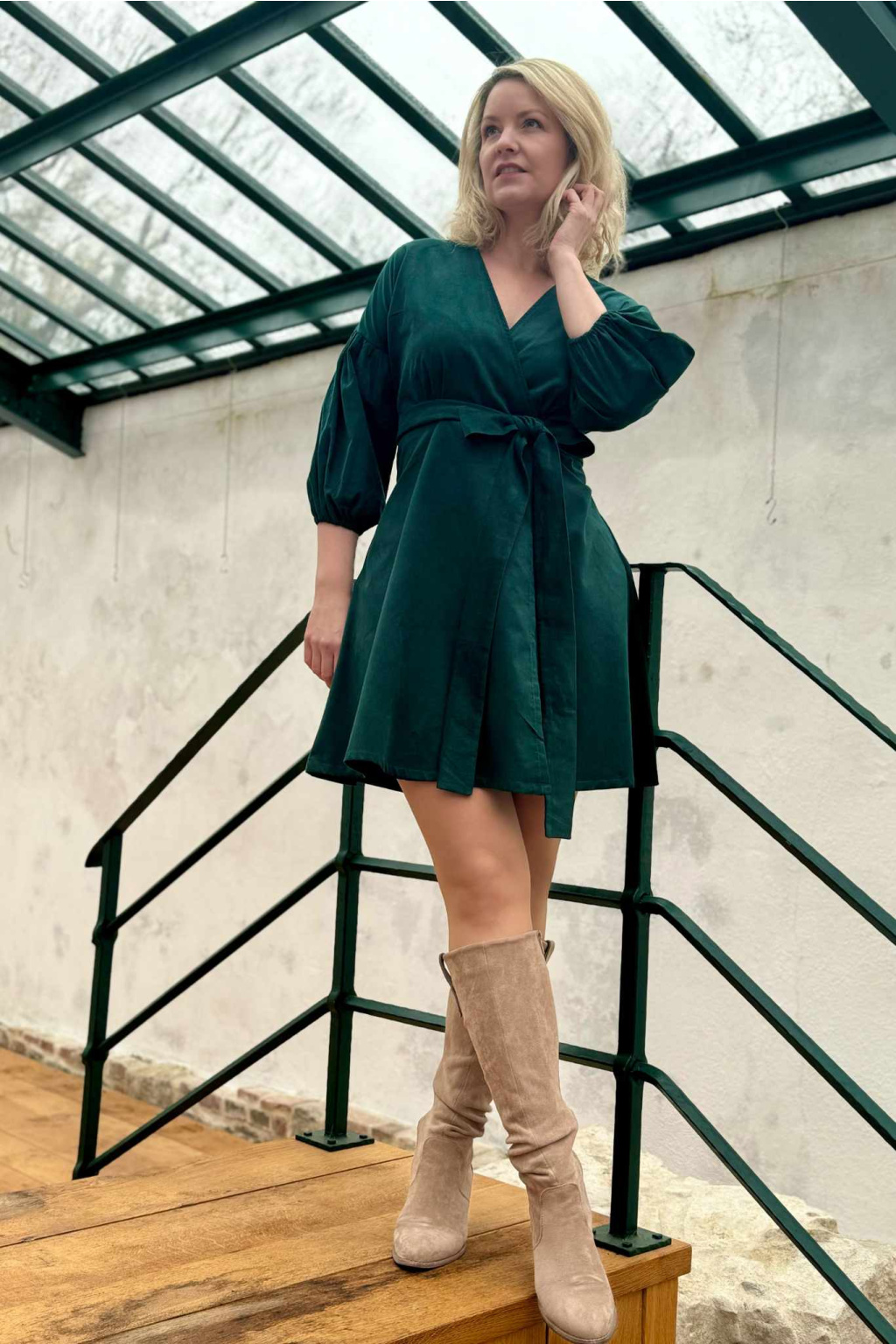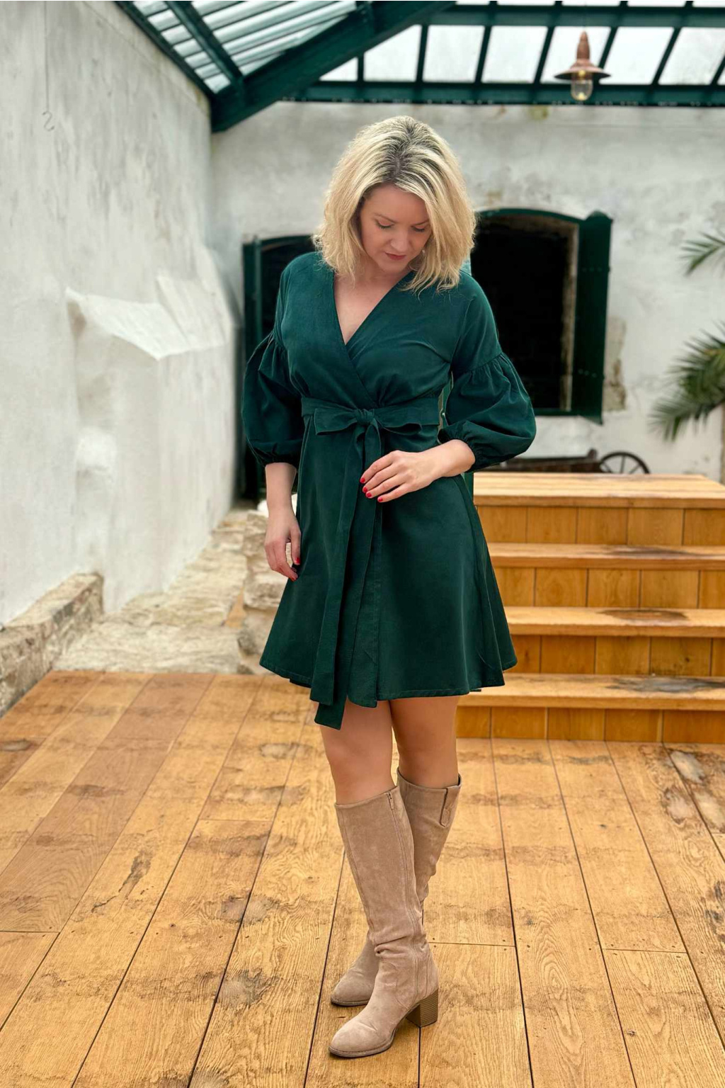 Manšestrové zavinovací šaty Mirabela - jehličnatá - krátké 95 cm - vel. XS - skladem