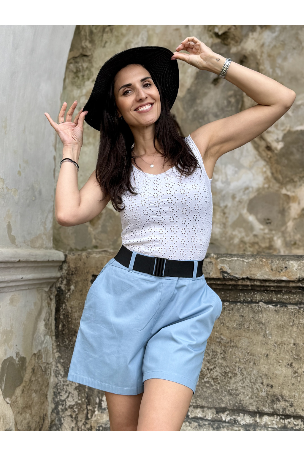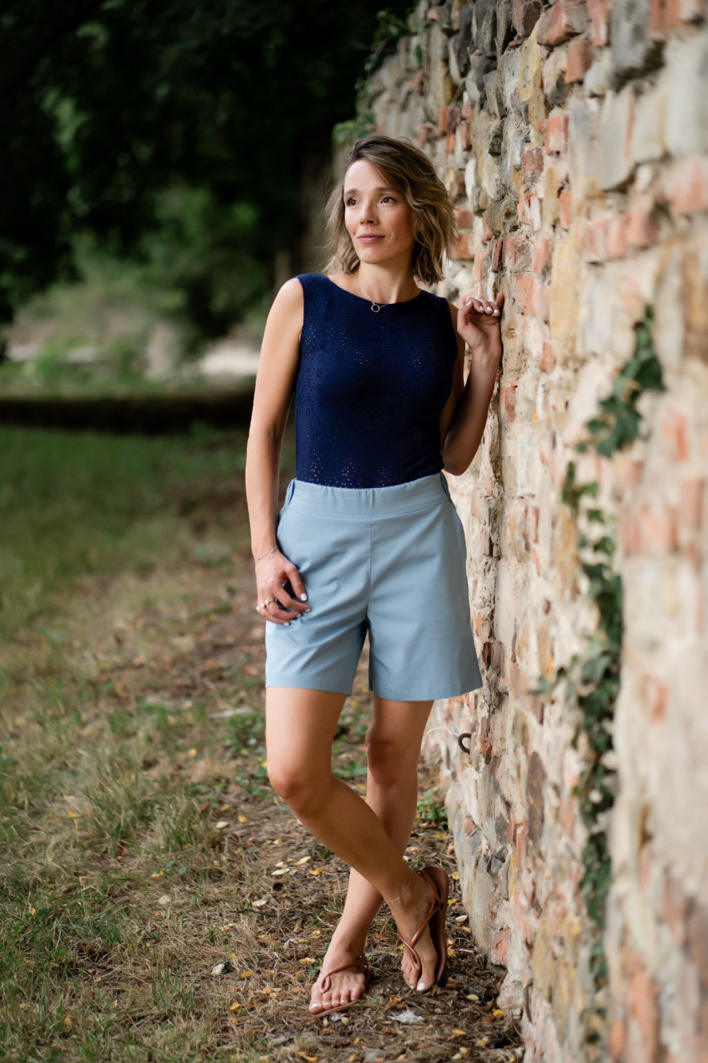 Výstřih: lodičkový výstřih na jedné straně, hlubší kulatý na druhé – model je oboustranný