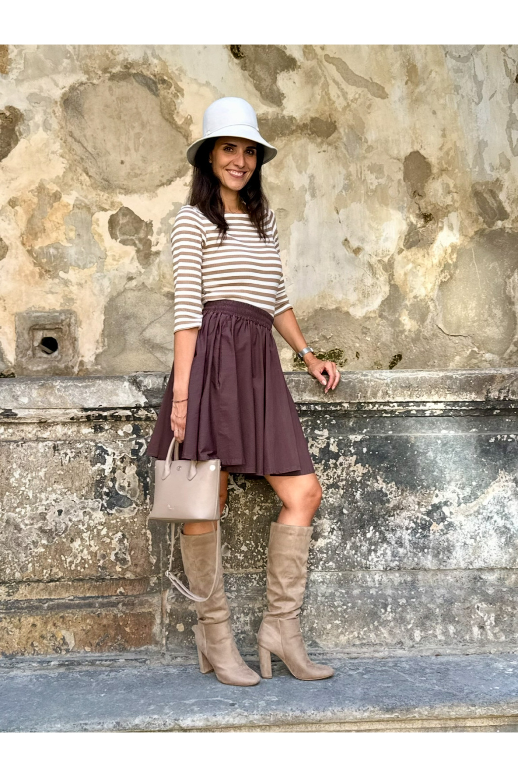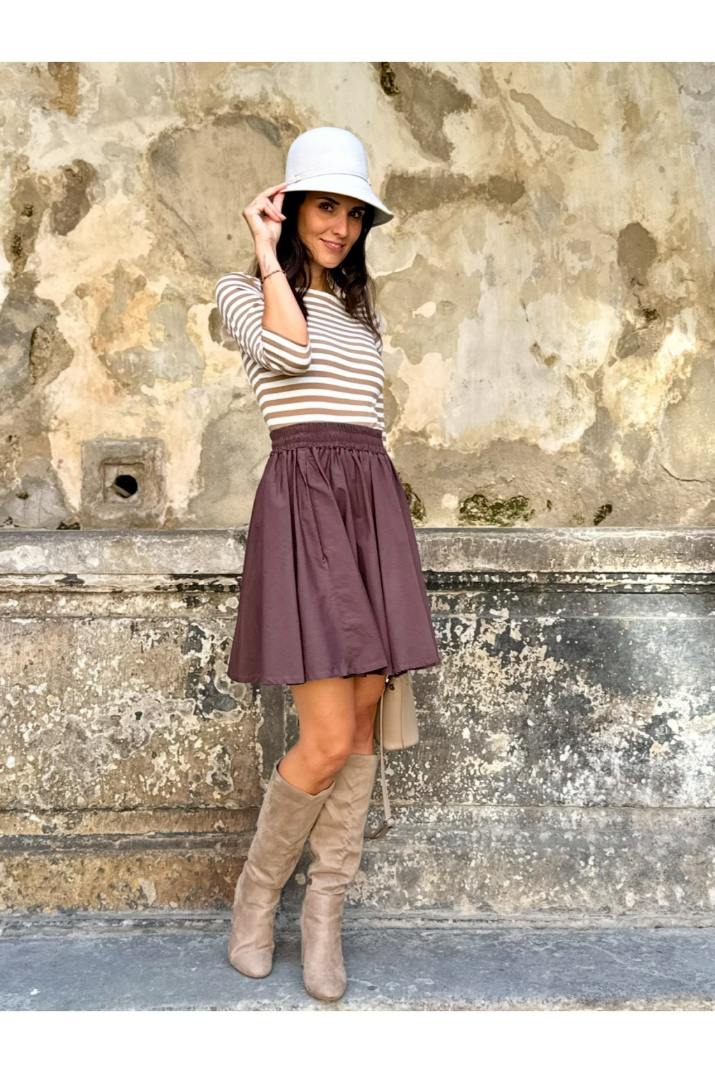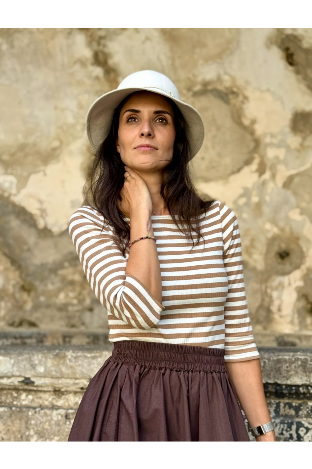 Proužkované tričko Klasik - mocha-smetanová - vel. S - skladem
