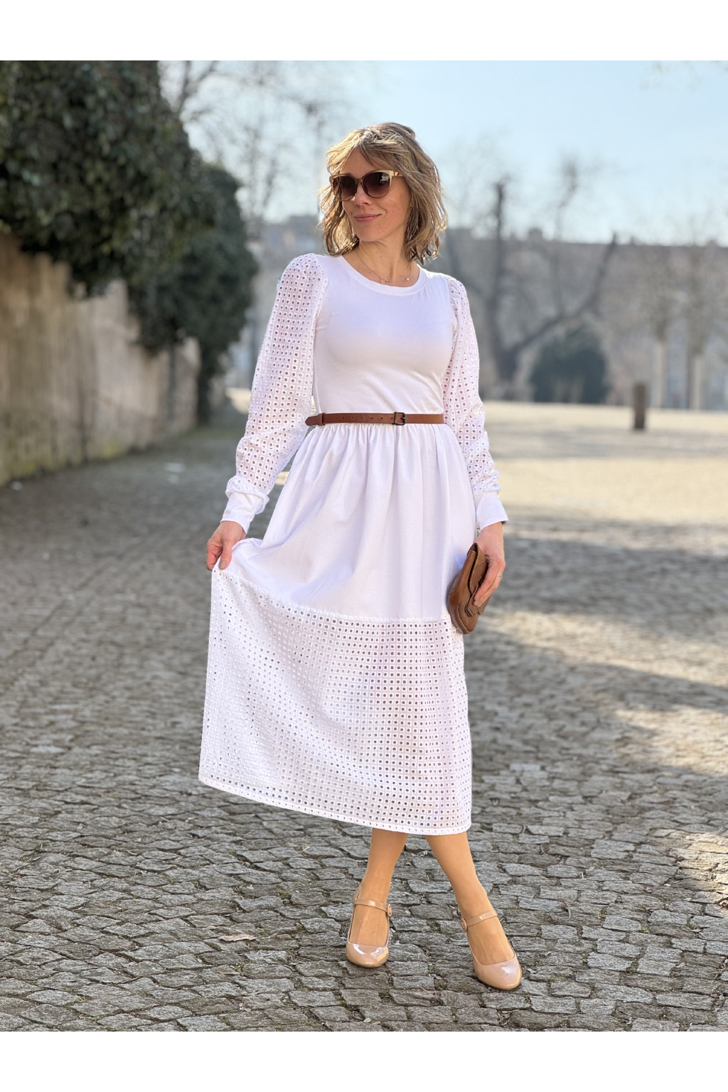 Šaty Donatella - bílá - s rukávy - vel. XL - 110 cm - skladem