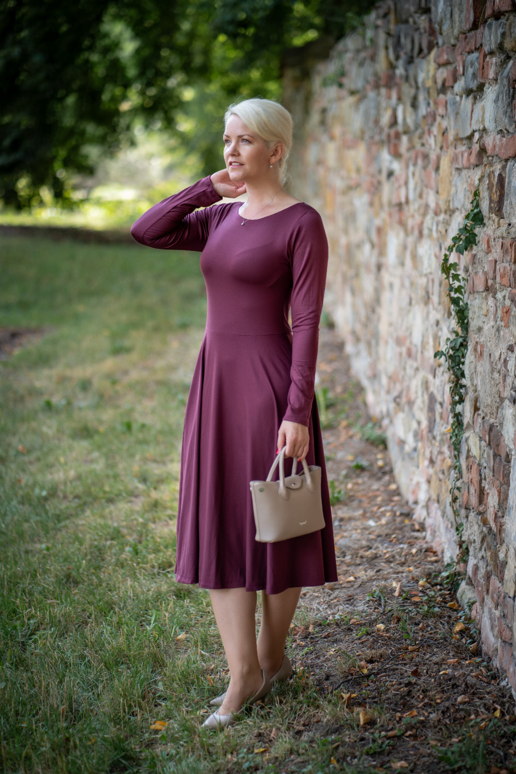 Tencelové šaty Klasik - vínová - krátké 105 cm - vel. S - skladem
