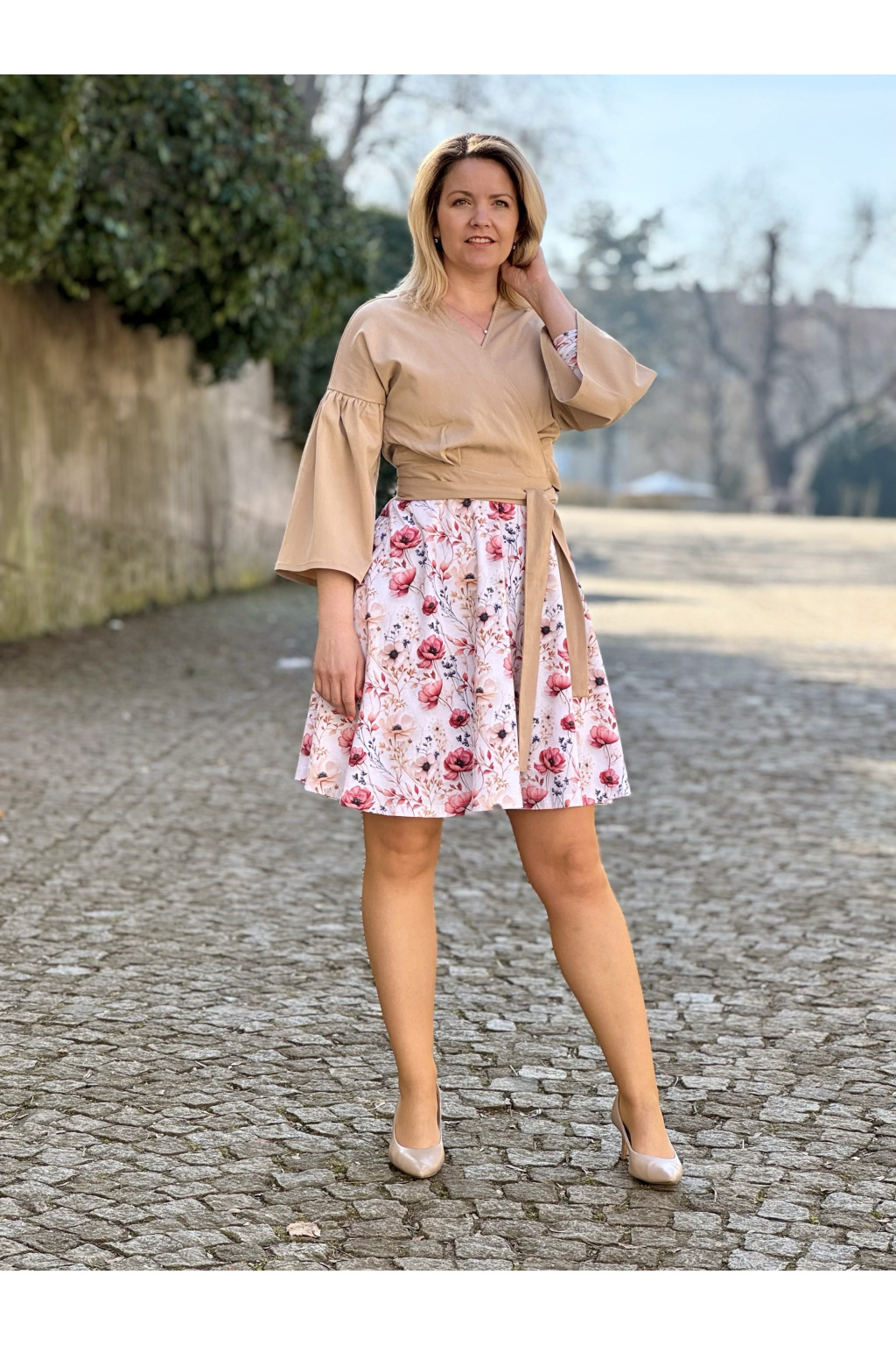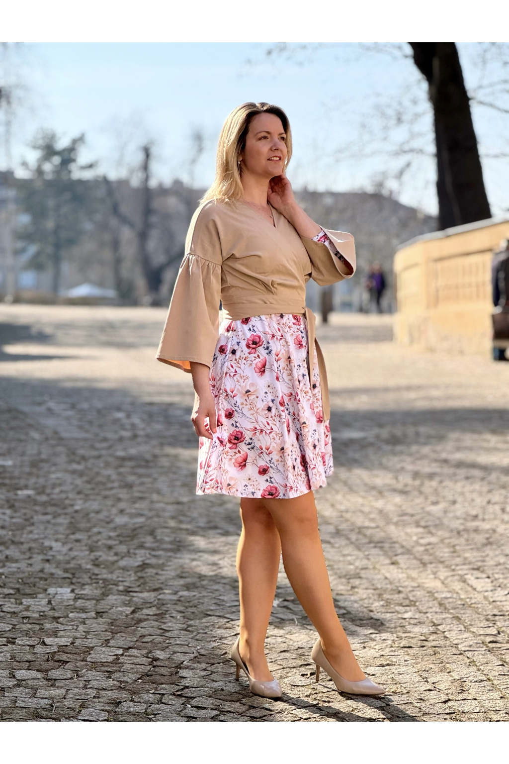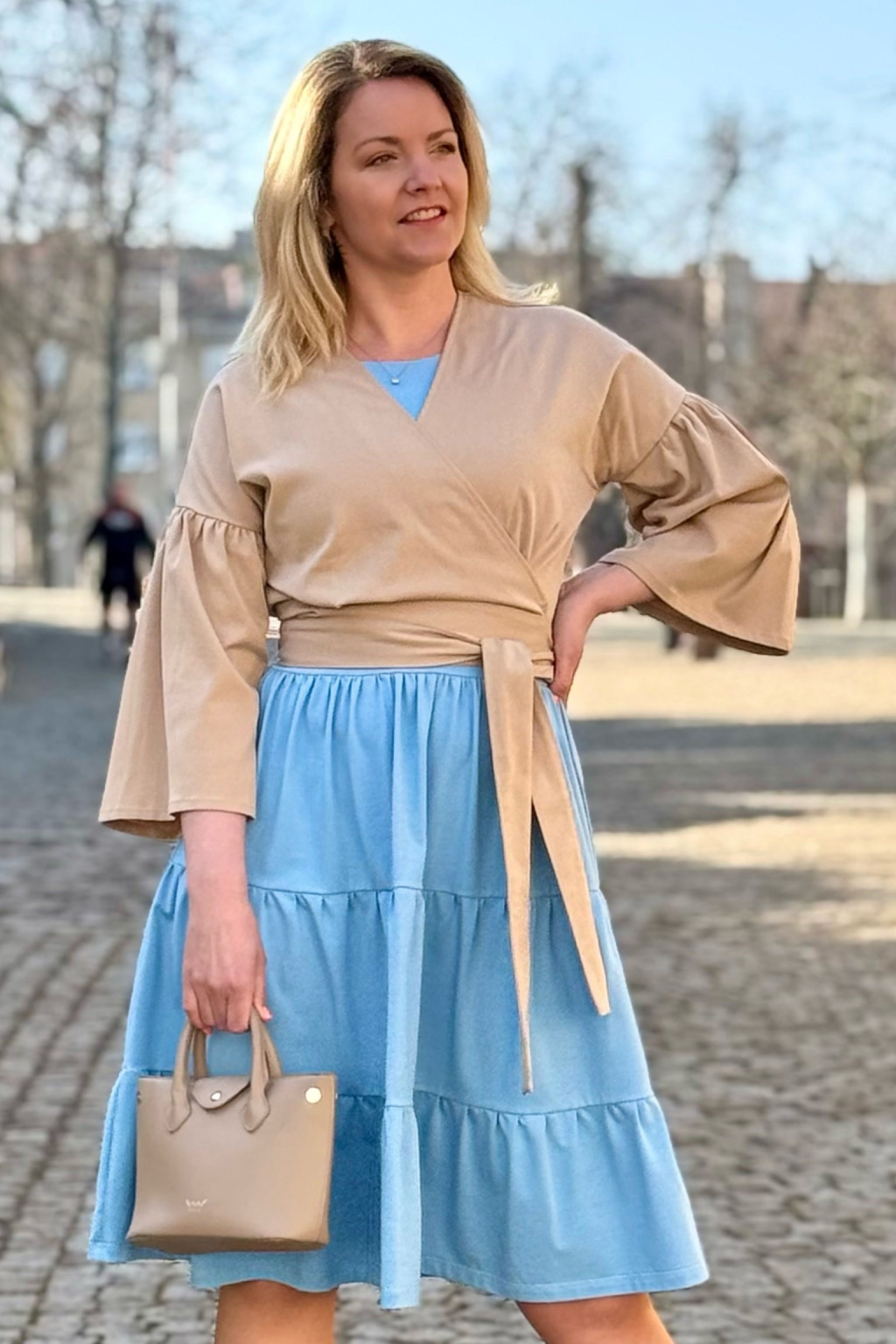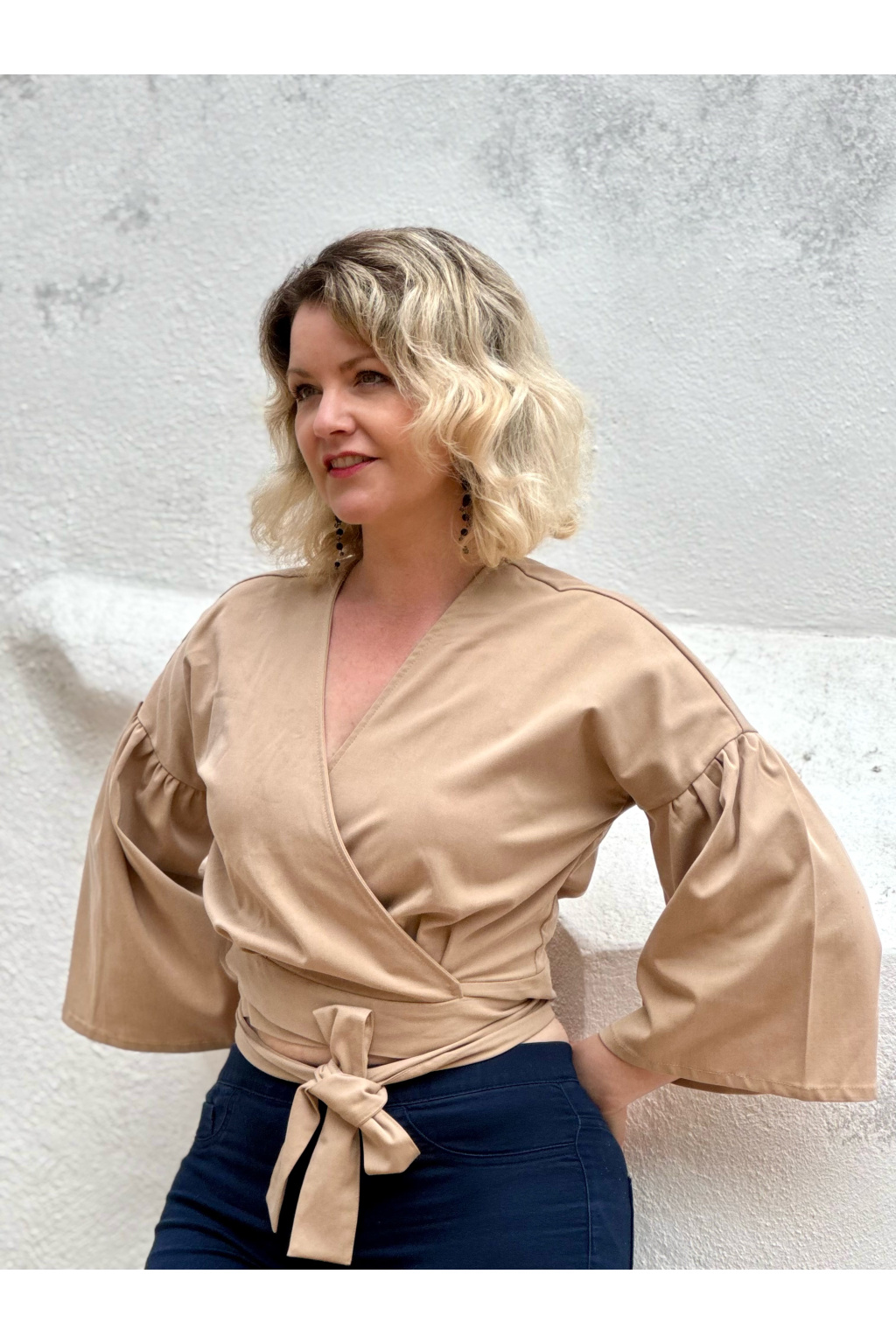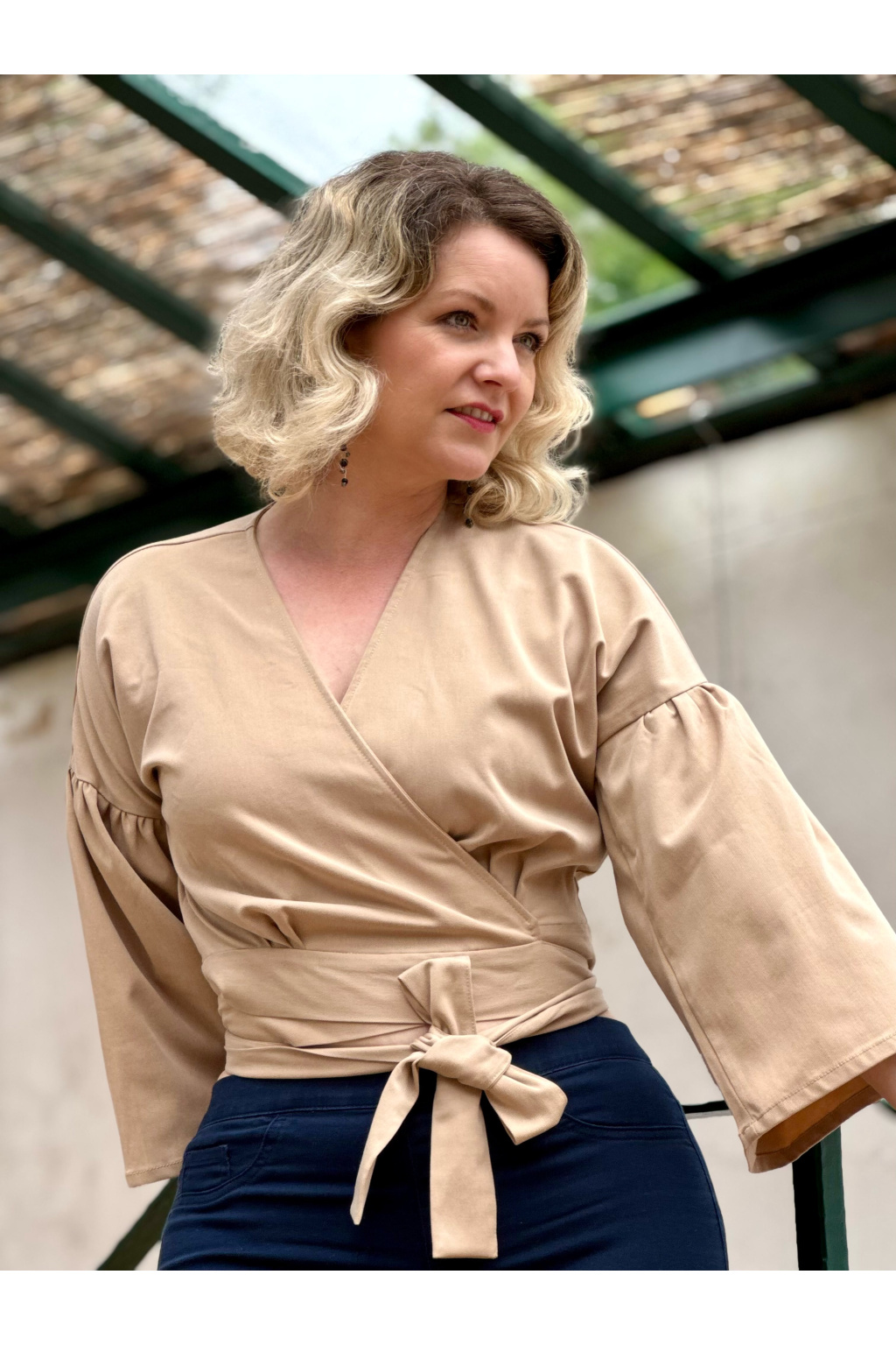 Tencelový zavinovací top - písková - 7/8 rukáv - vel. S - skladem
