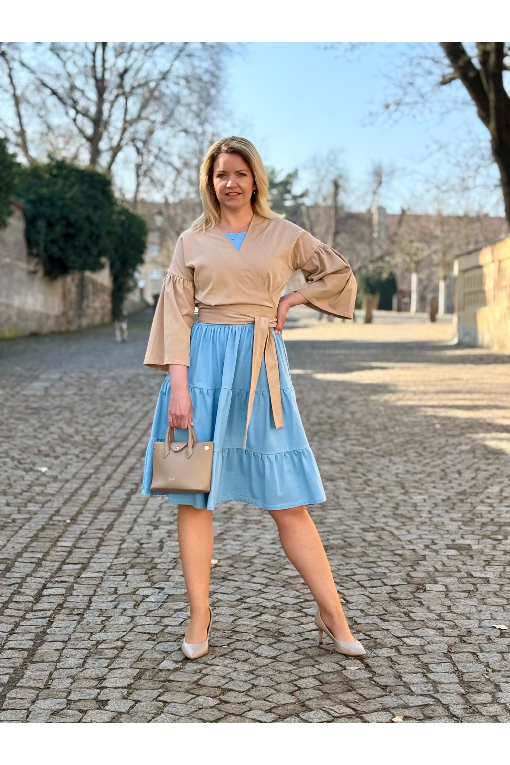Tencelový zavinovací top - písková - vel. XXS - skladem