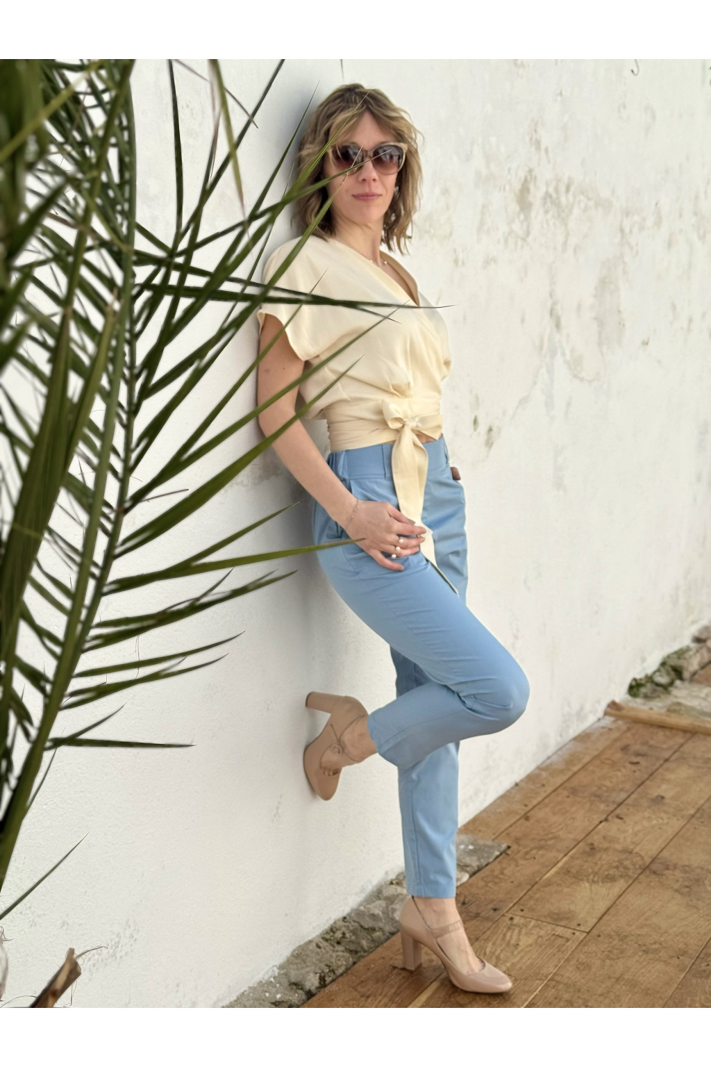 Tencelový zavinovací top - smetanová - krátký rukáv - vel. S - skladem