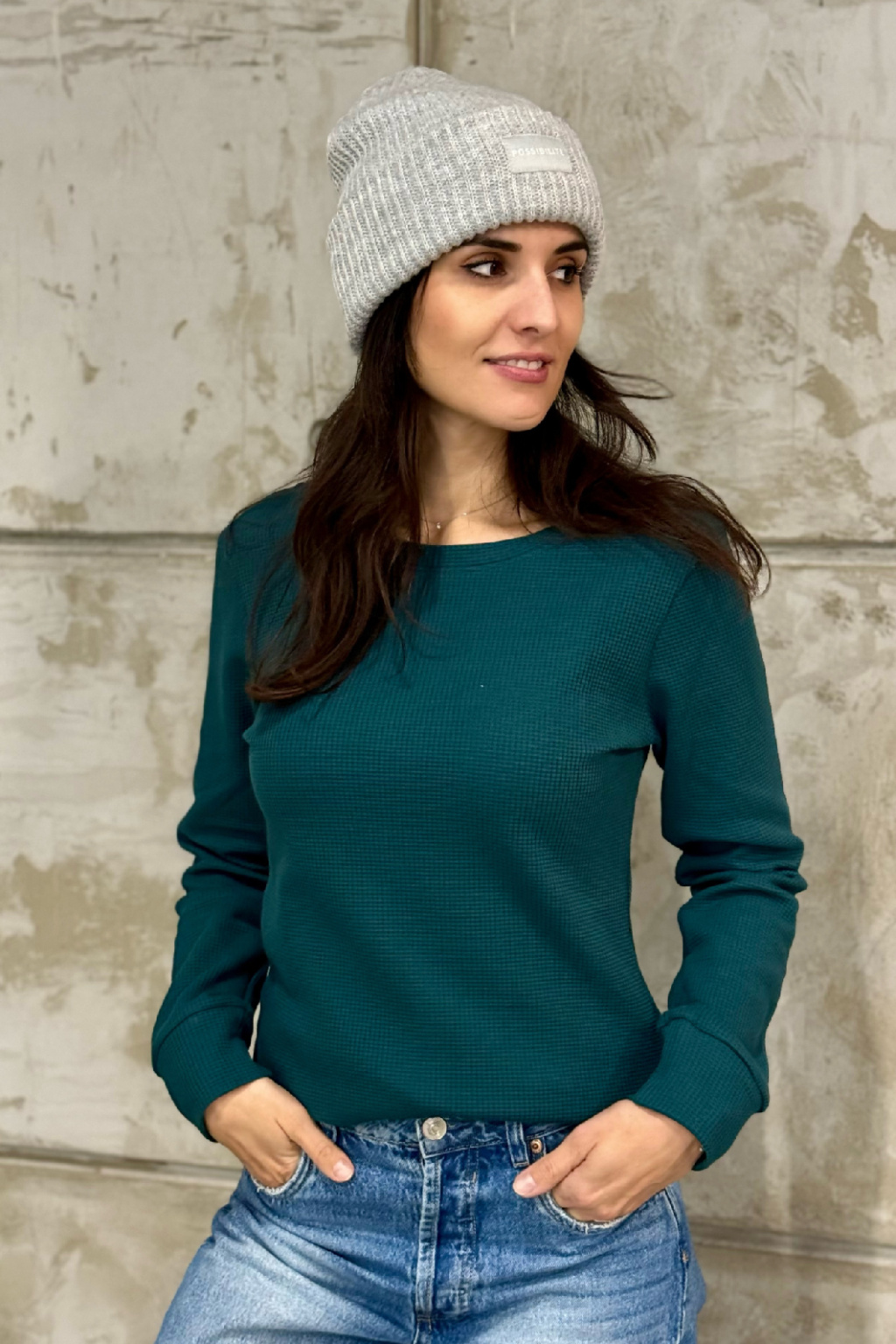 Vaflová bio bavlněná mikina - Zarina - jehličnatá - vel. S - skladem