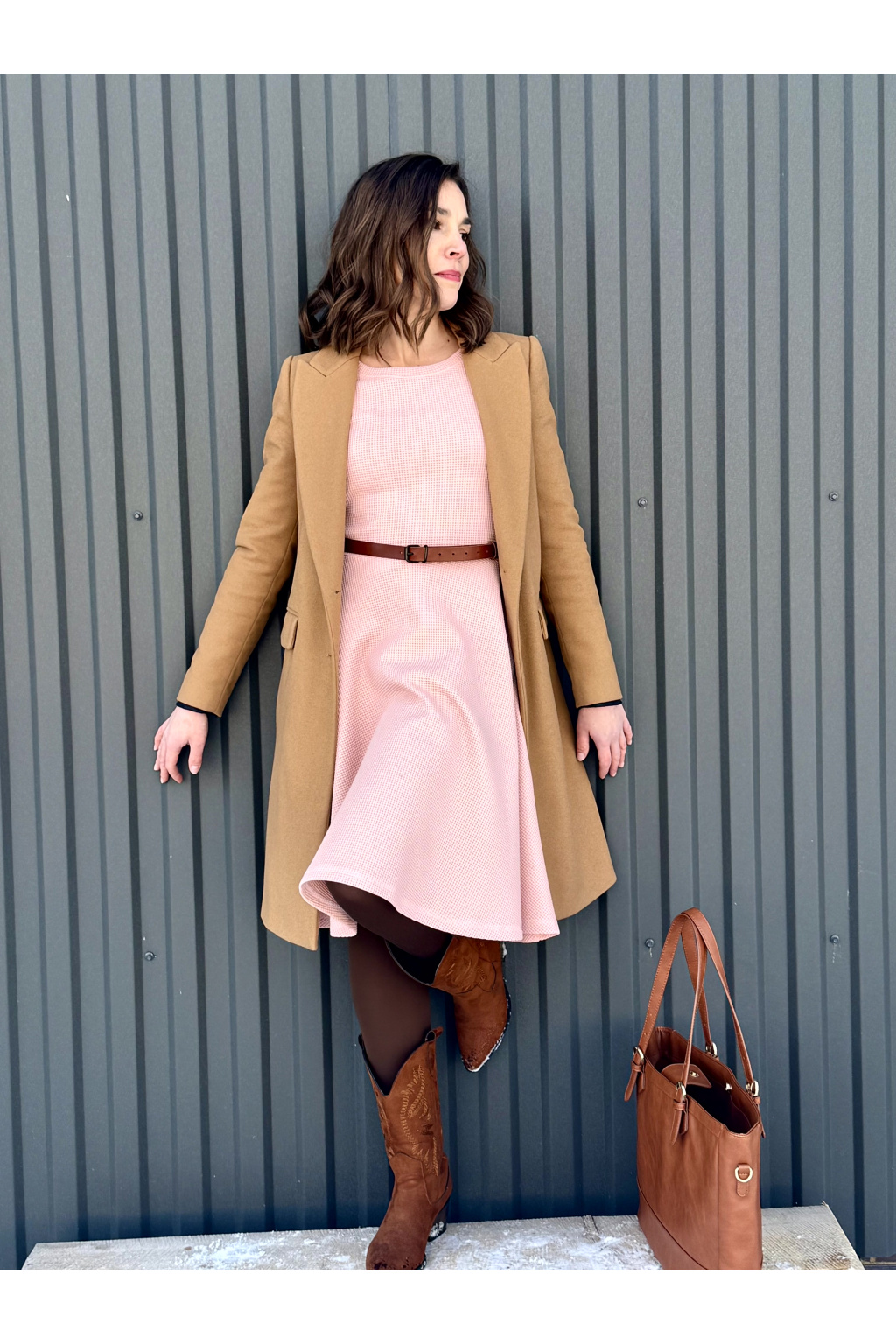 Vaflové bio bavlněné šaty Klasik - Zarina - broskvová - krátké 90 cm - vel. M - skladem