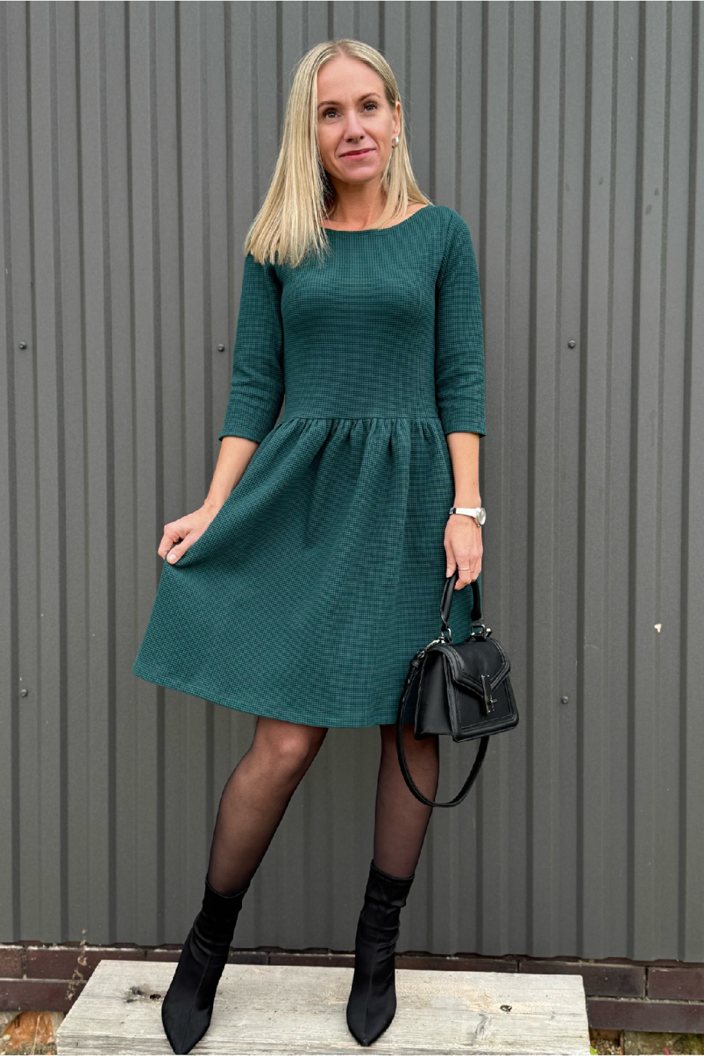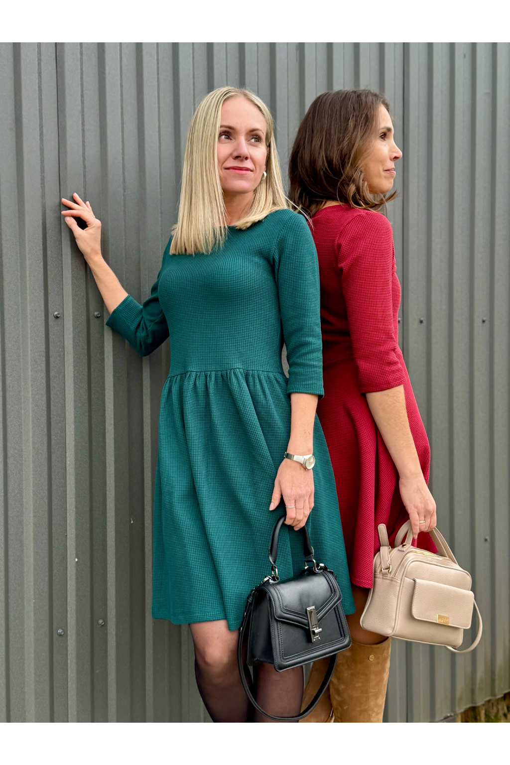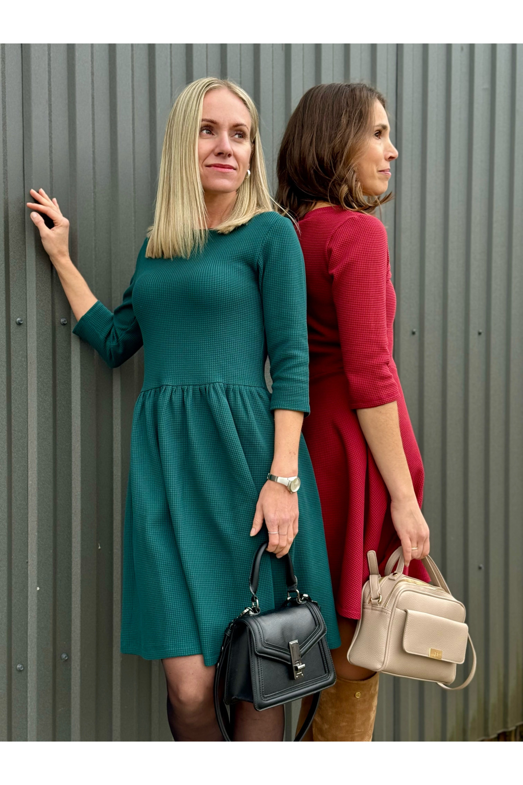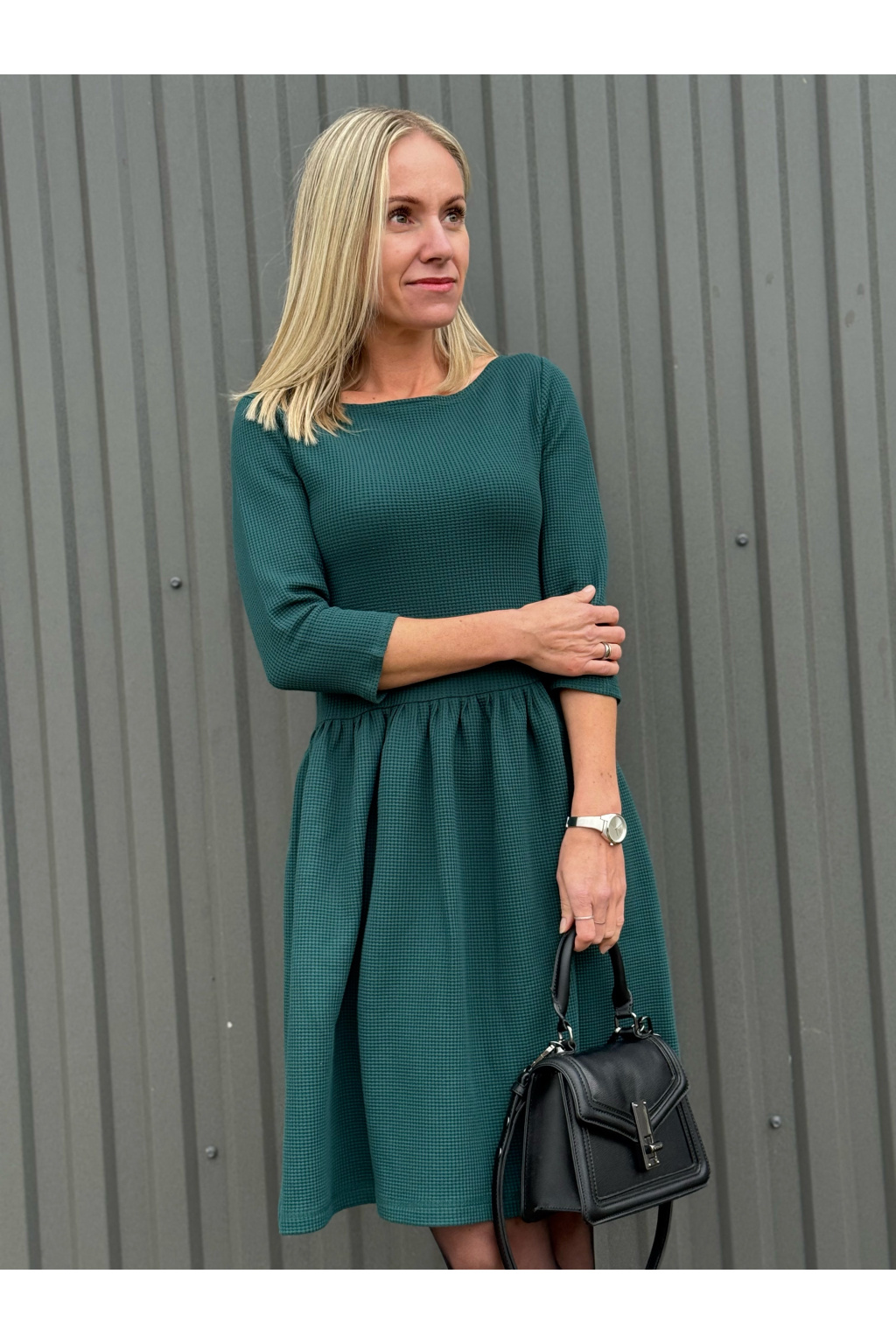 Vaflové bio bavlněné šaty Klasik - Zarina - jehličnatá - midi 115 cm - vel. XS - skladem