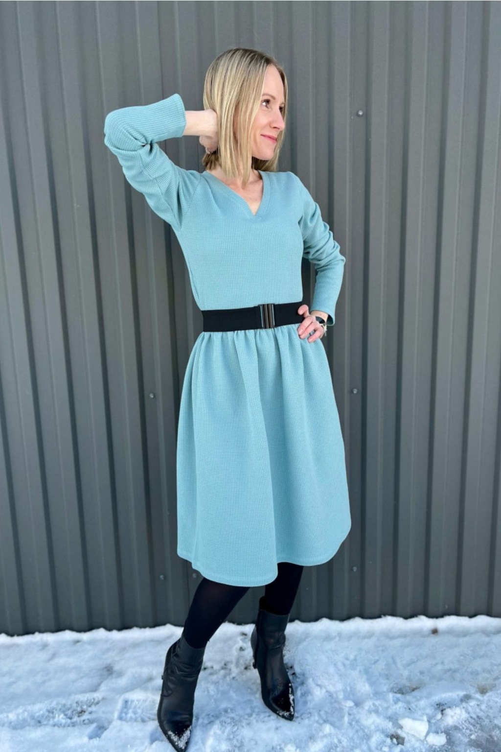 Vaflové bio bavlněné šaty Klasik - Zarina - mentolová - krátké 95 cm - vel. M - skladem