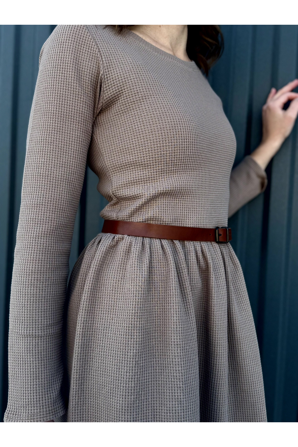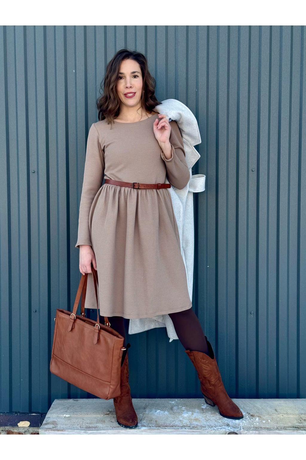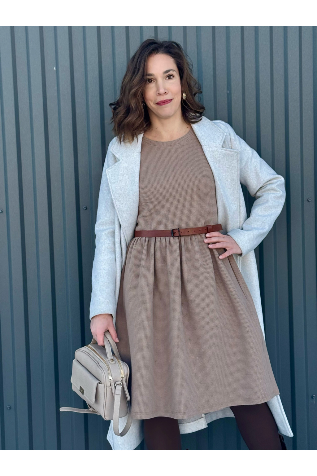 Vaflové bio bavlněné šaty Klasik - Zarina - oříšková - krátké 95 cm - vel. XS - skladem