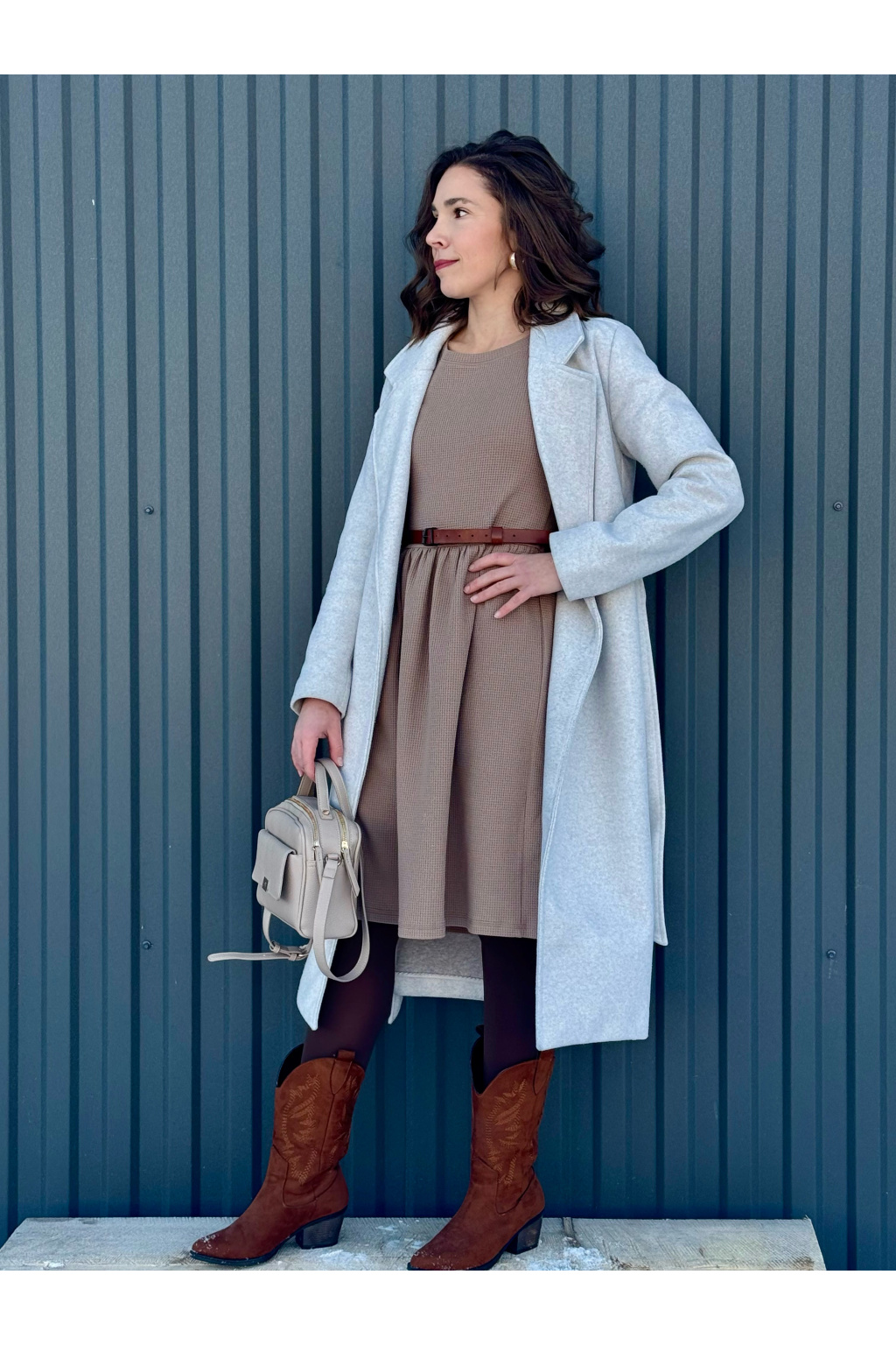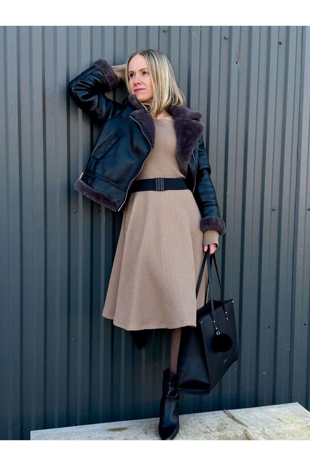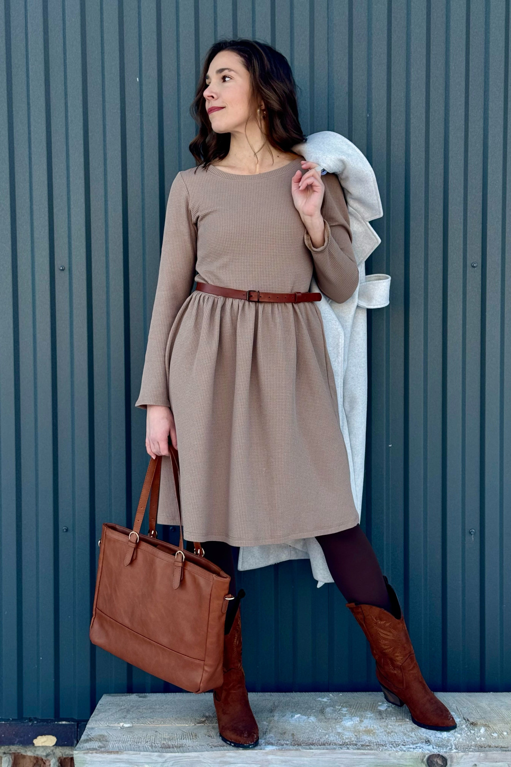 Vaflové bio bavlněné šaty Klasik - Zarina - oříšková - krátké 95 cm - vel. XS - skladem