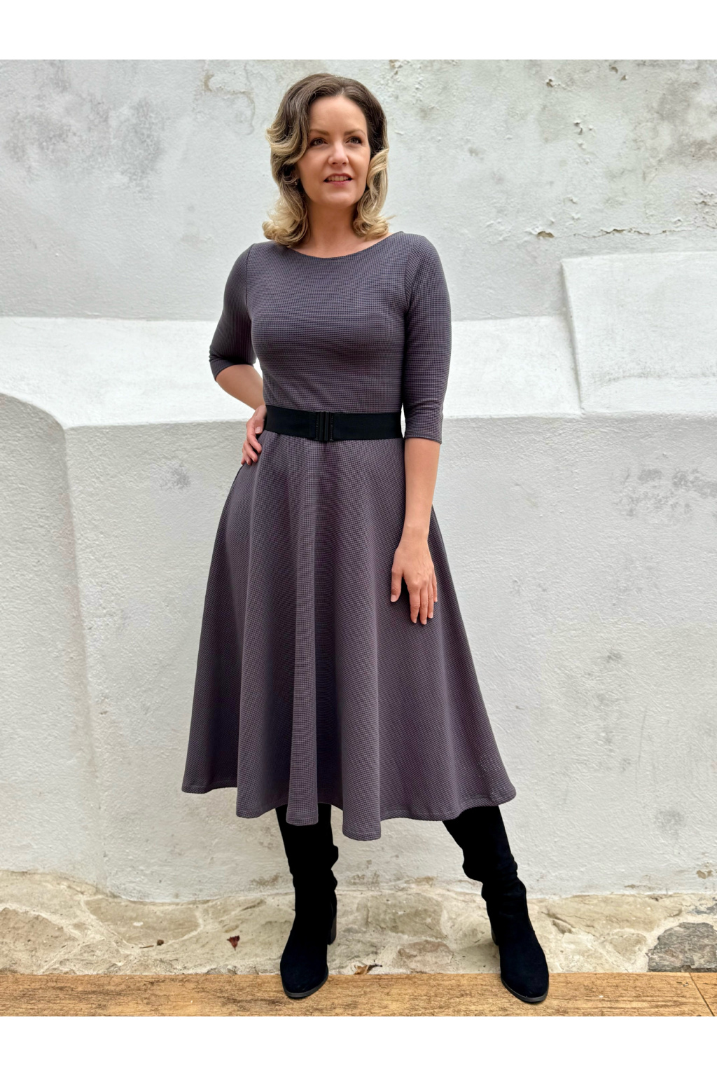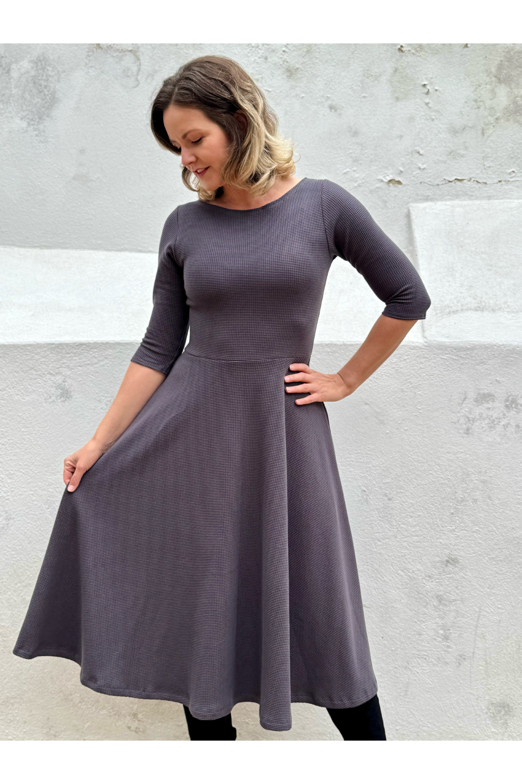 Vaflové bio bavlněné šaty Klasik - Zarina - šedá - midi - 120 cm - vel. M - skladem
