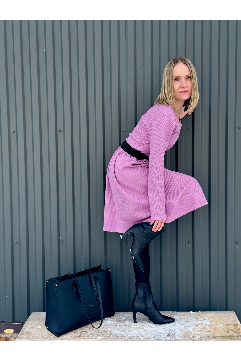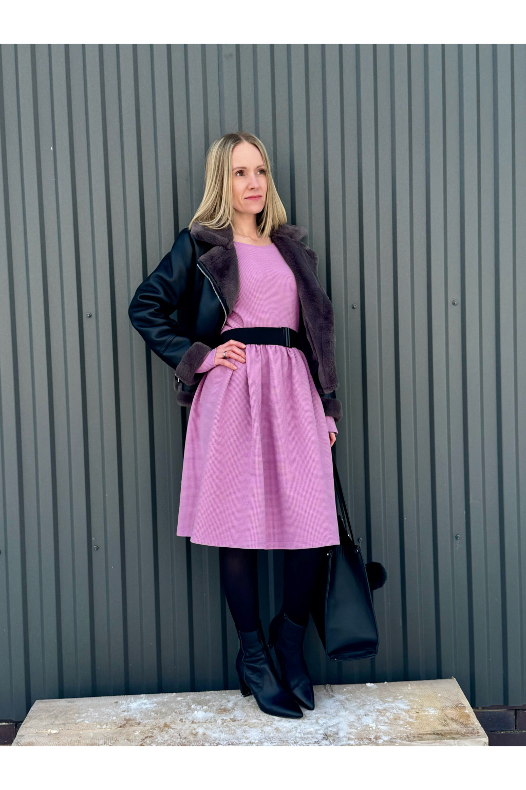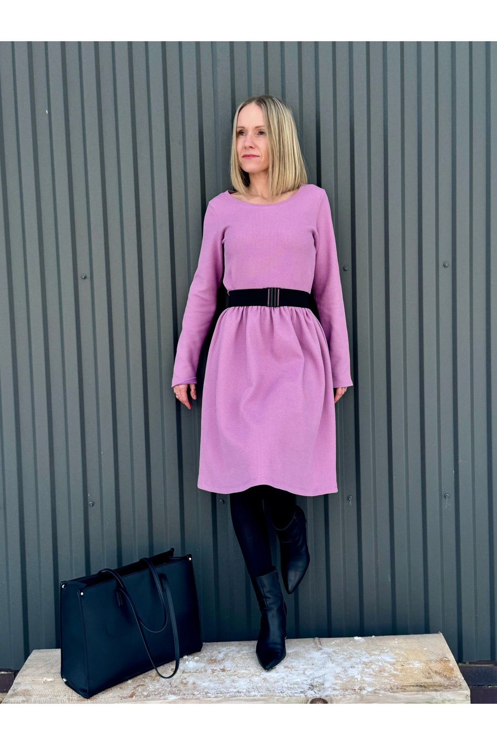 Vaflové bio bavlněné šaty Klasik - Zarina - šeříková - krátké 95 cm - vel. M - skladem