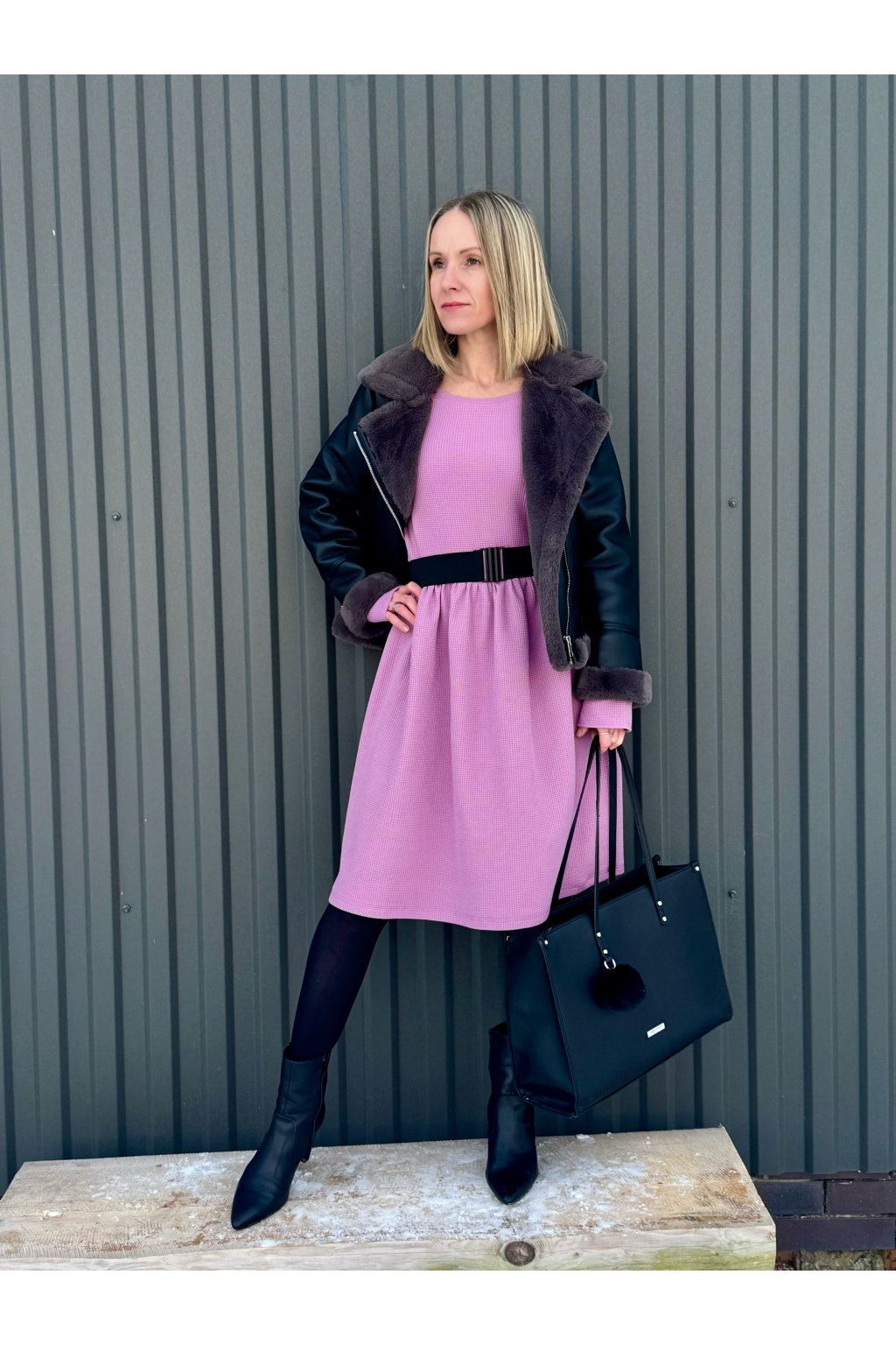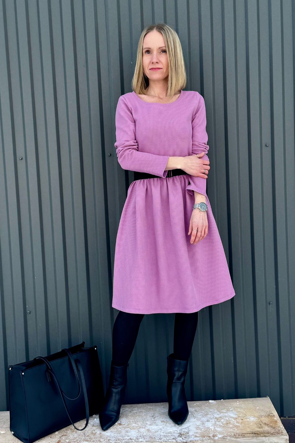 Vaflové bio bavlněné šaty Klasik - Zarina - šeříková - krátké 95 cm - vel. XS - skladem