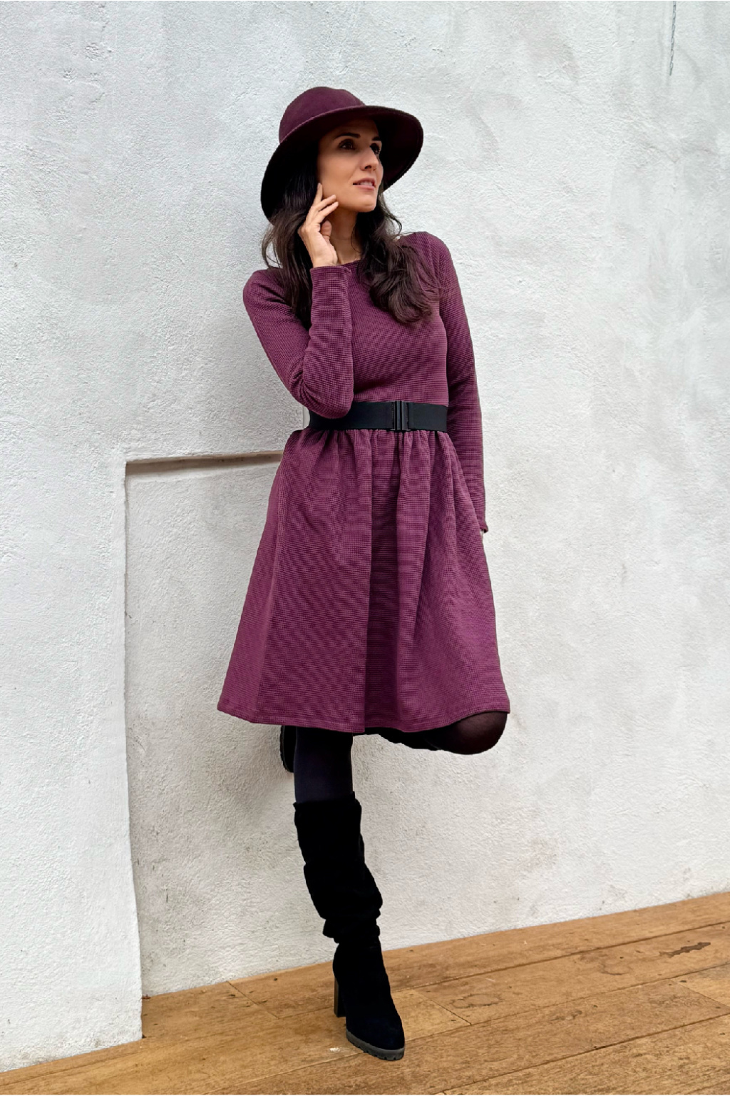 Vaflové bio bavlněné šaty Klasik - Zarina - vínová - krátké 95 cm - vel. S - skladem