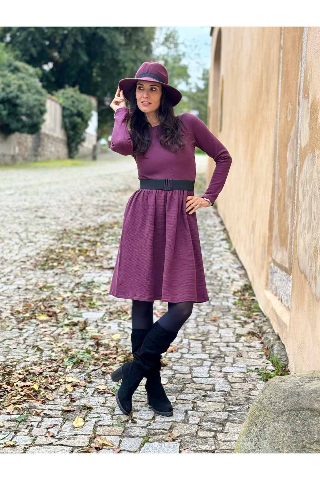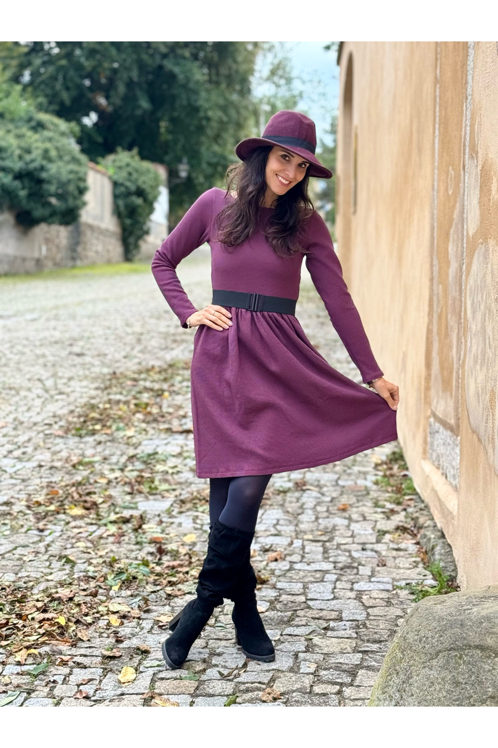 Vaflové bio bavlněné šaty Klasik - Zarina - vínová - krátké 95 cm - vel. L - skladem