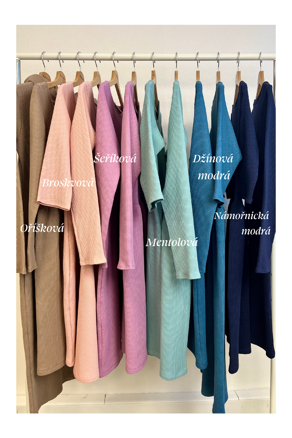 Vaflové bio bavlněné úzké šaty - Zarina - džínová modrá - midi 110 cm - vel. M - skladem