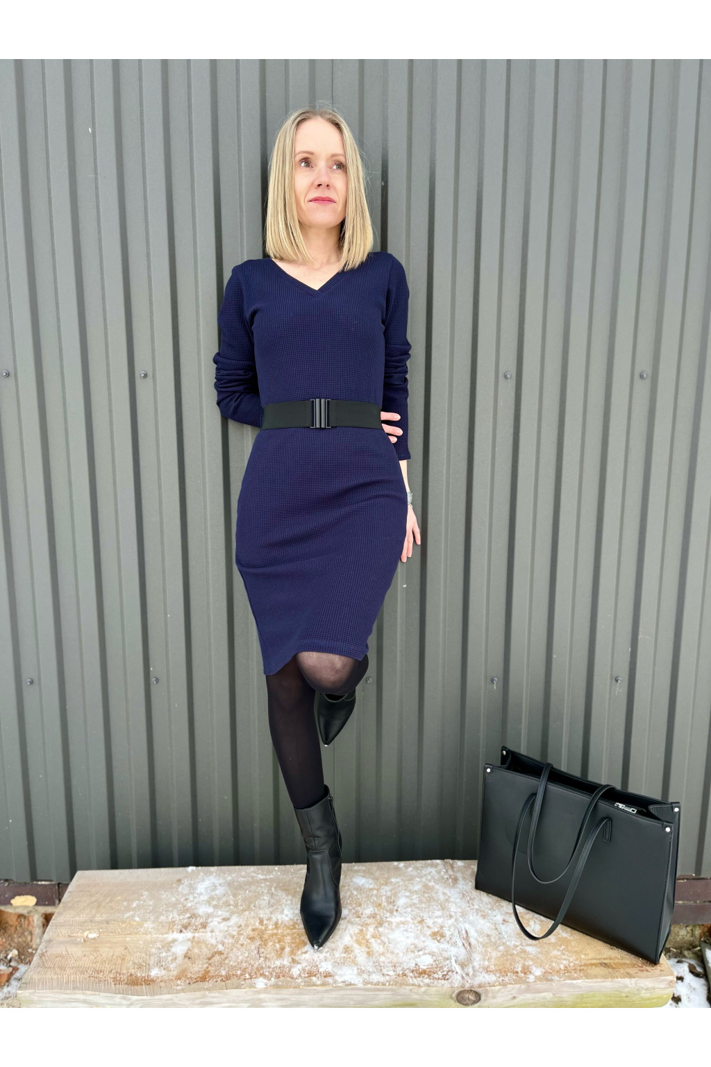 Vaflové bio bavlněné úzké šaty - Zarina - námořnická modrá - krátké 95 cm - vel. XS - skladem