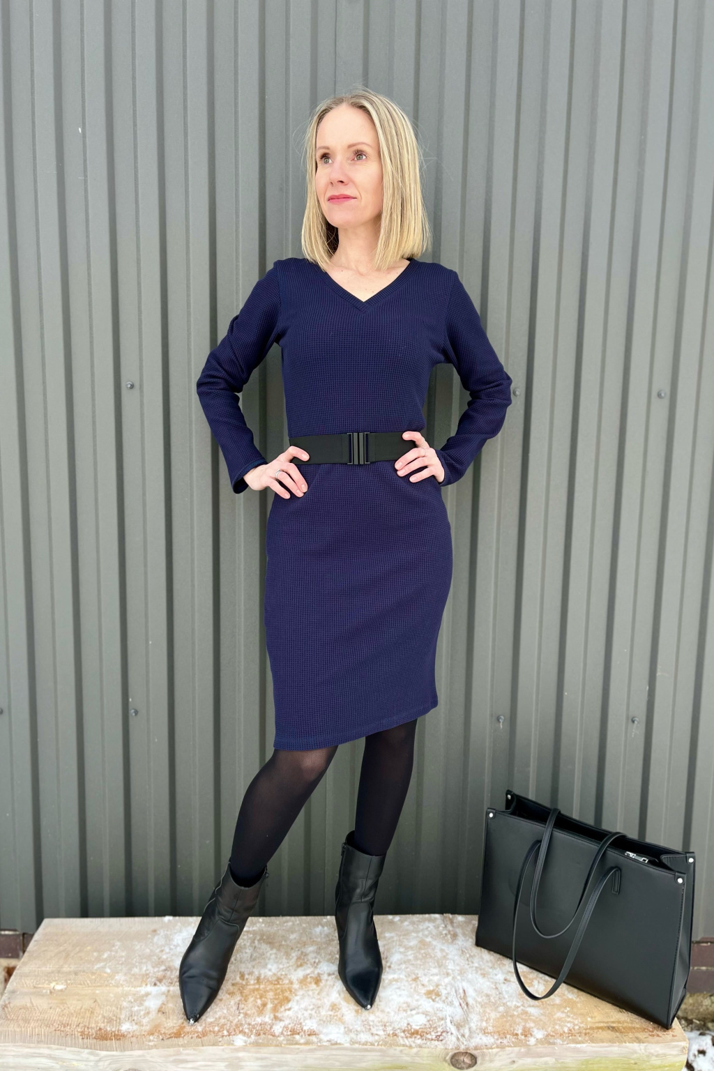 Vaflové bio bavlněné úzké šaty - Zarina - námořnická modrá - krátké 95 cm - vel. XS - skladem