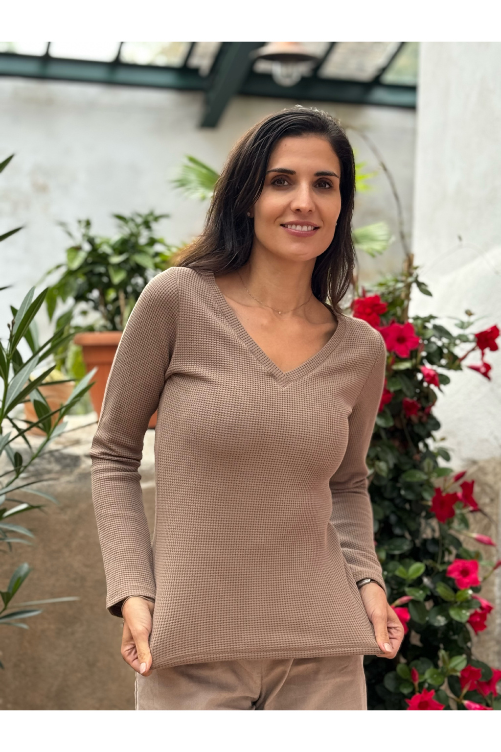 Vaflové tričko Klasik - oříšková - vel. XS - skladem