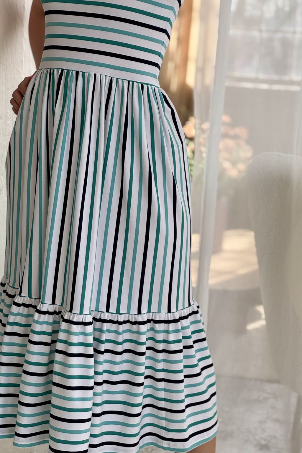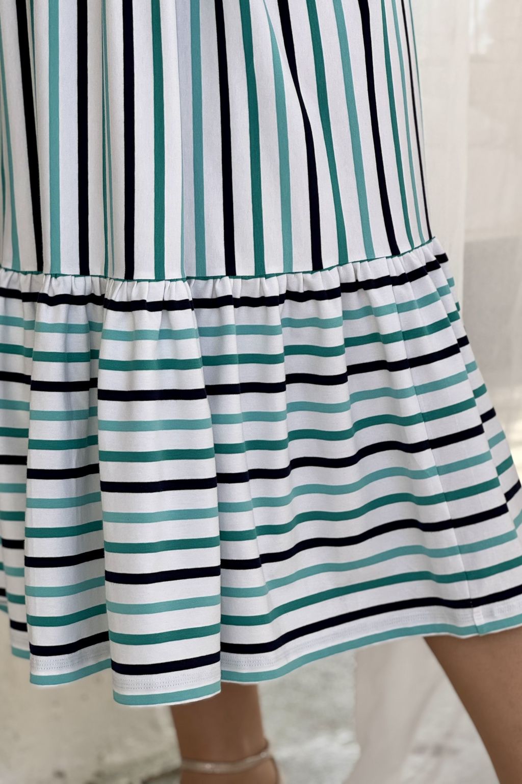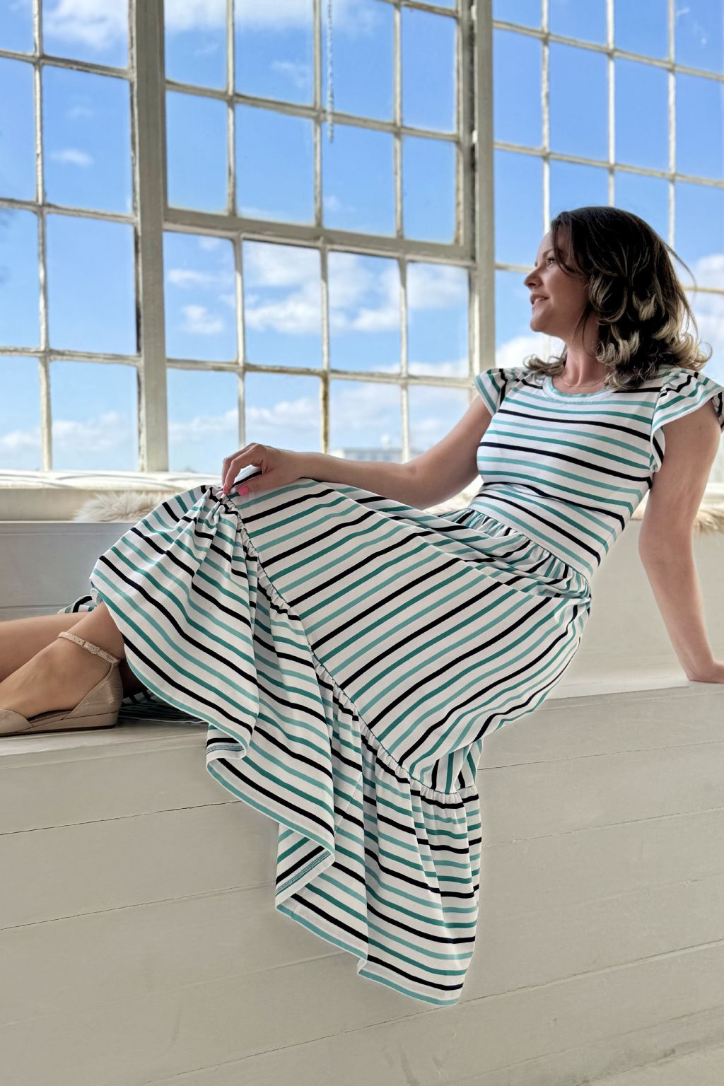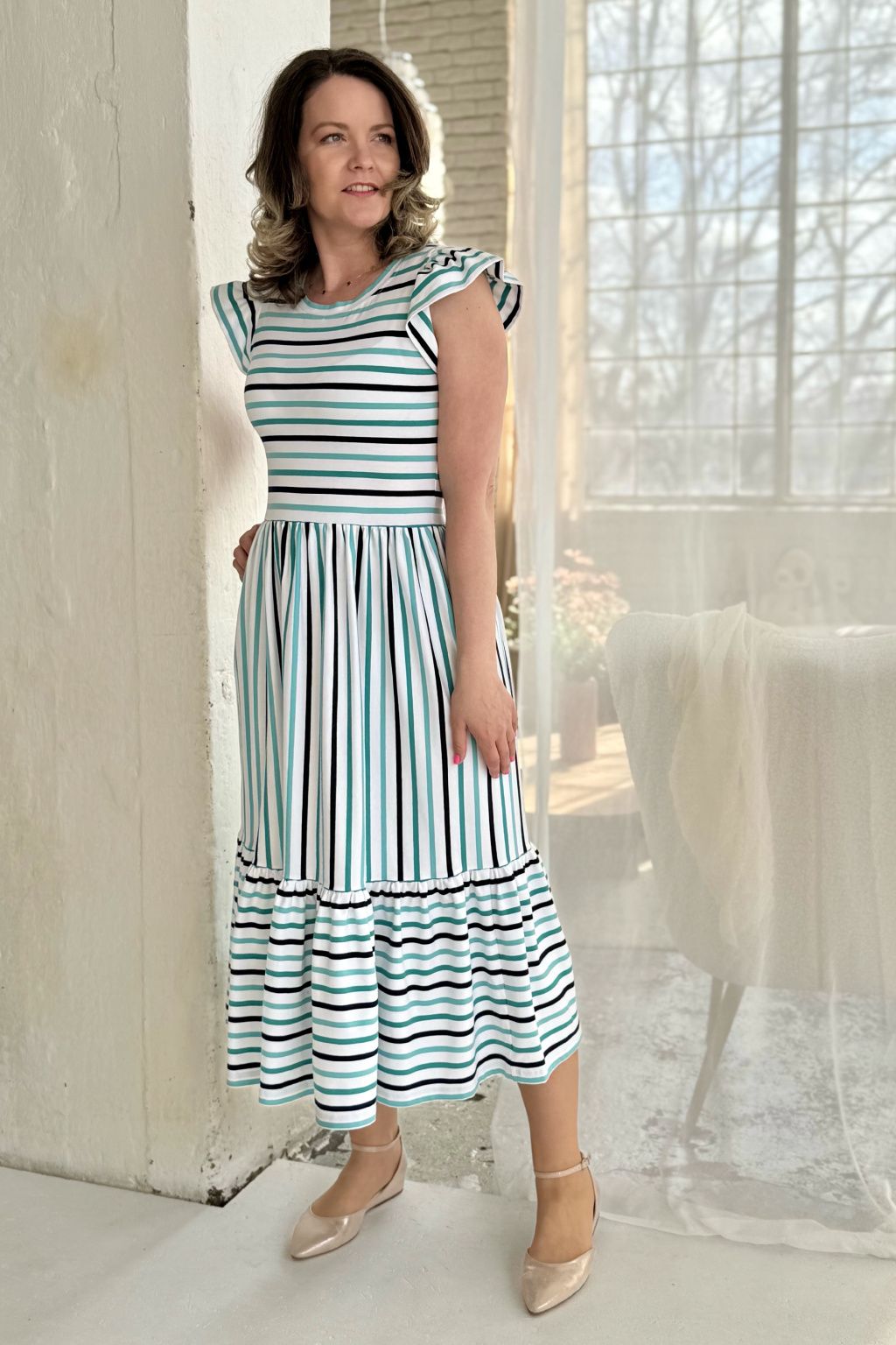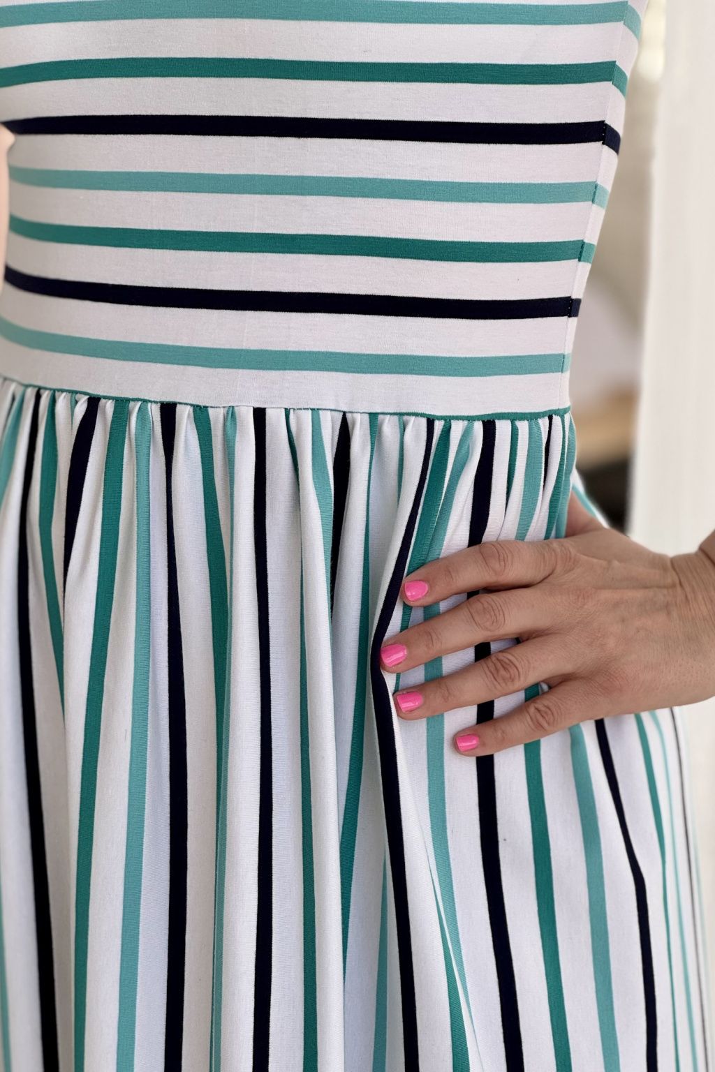 Proužkované řasené šaty Aria - tyrkysová - midi