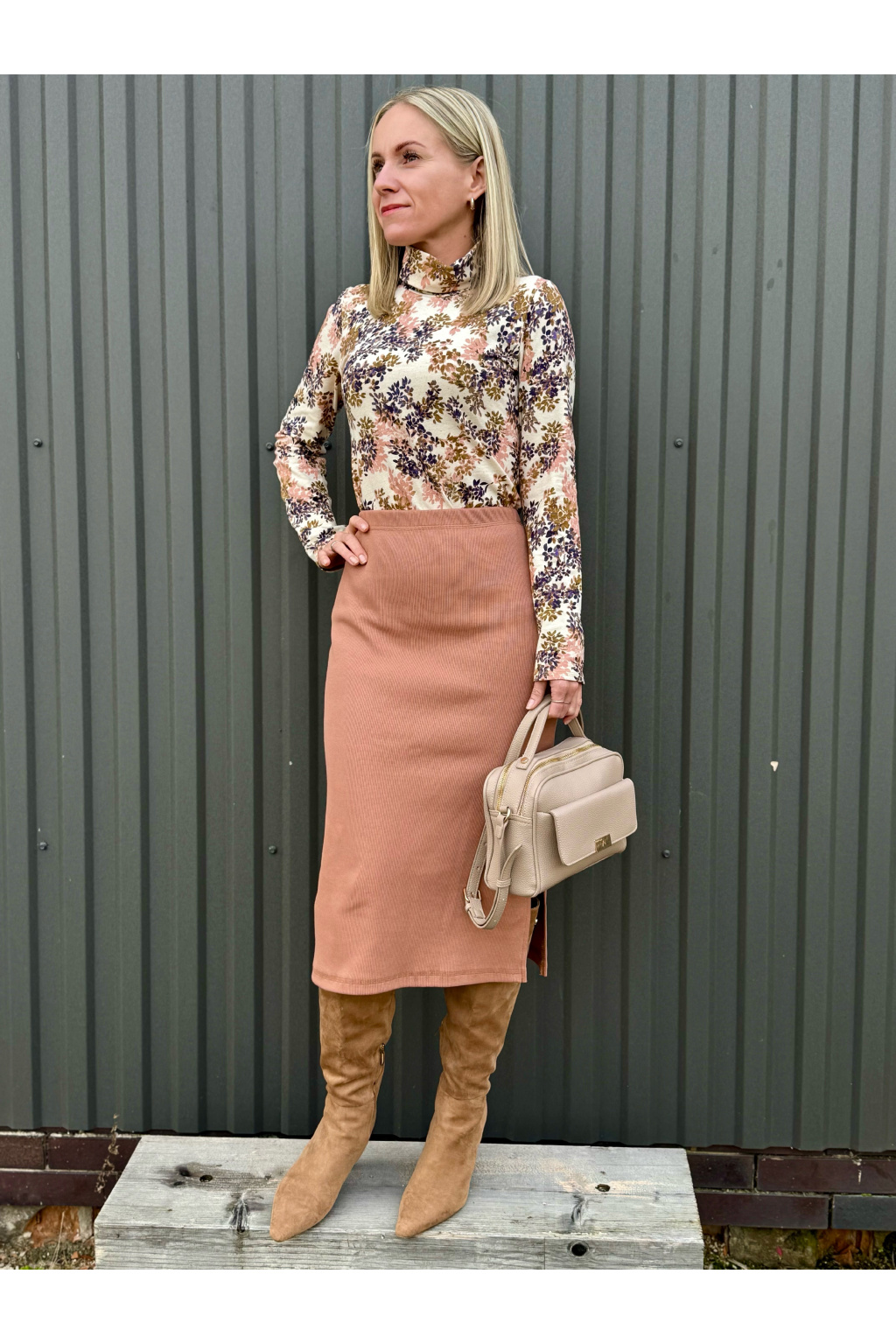 Modelka na fotce má na sobě: rolák vel. S, dlouhý rukáv.