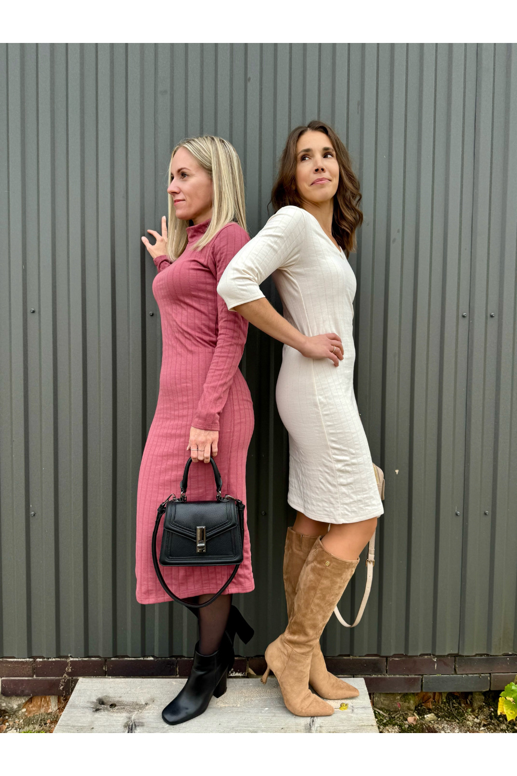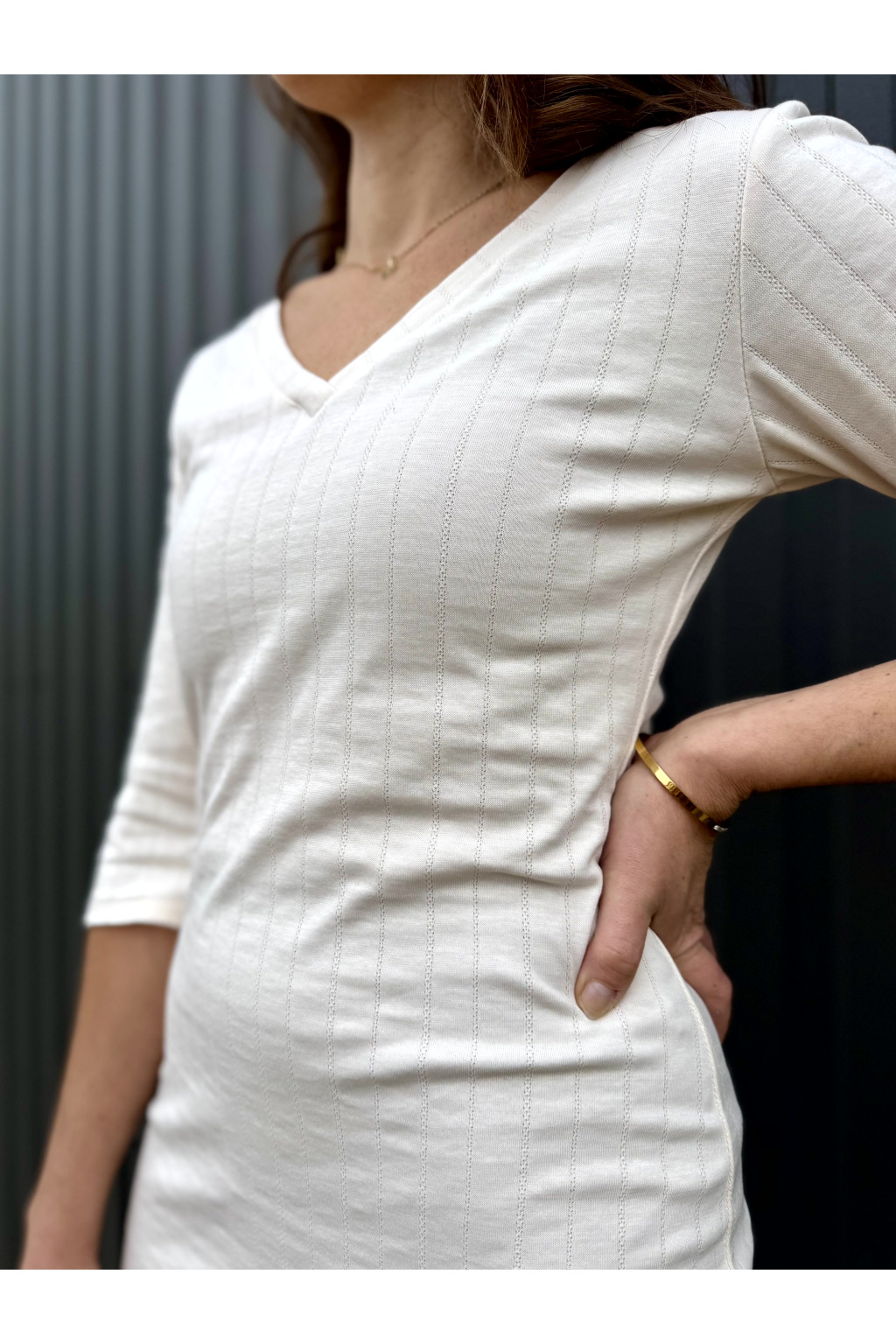 Úzké šaty - pointelle - smetanová - krátké / midi