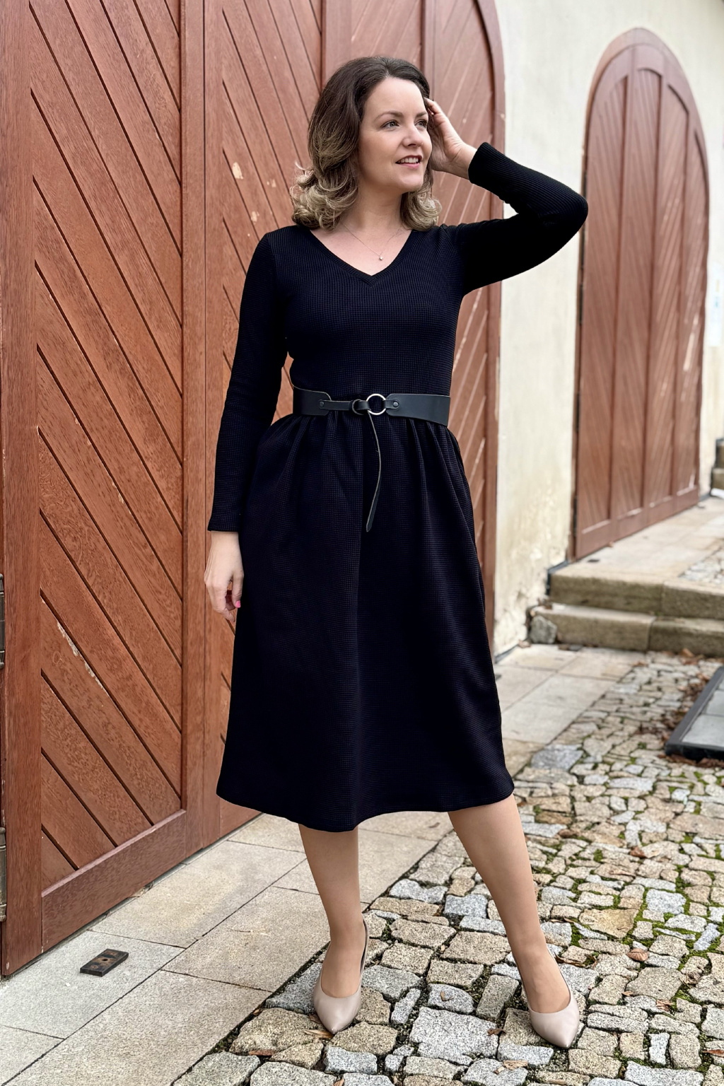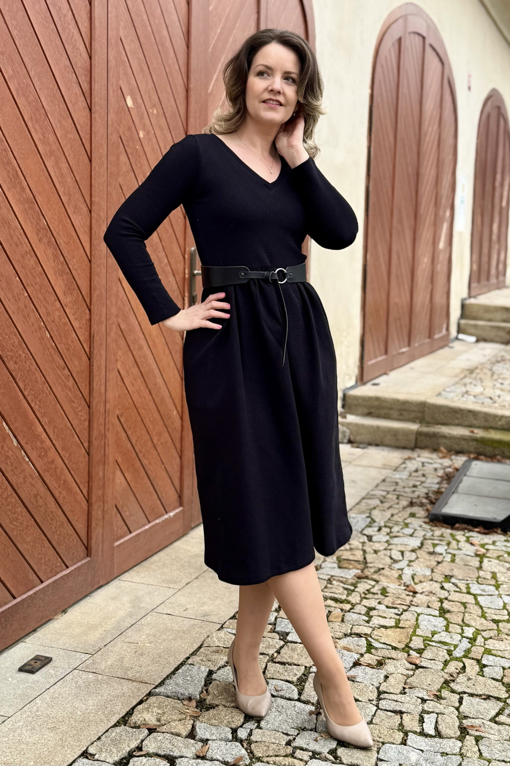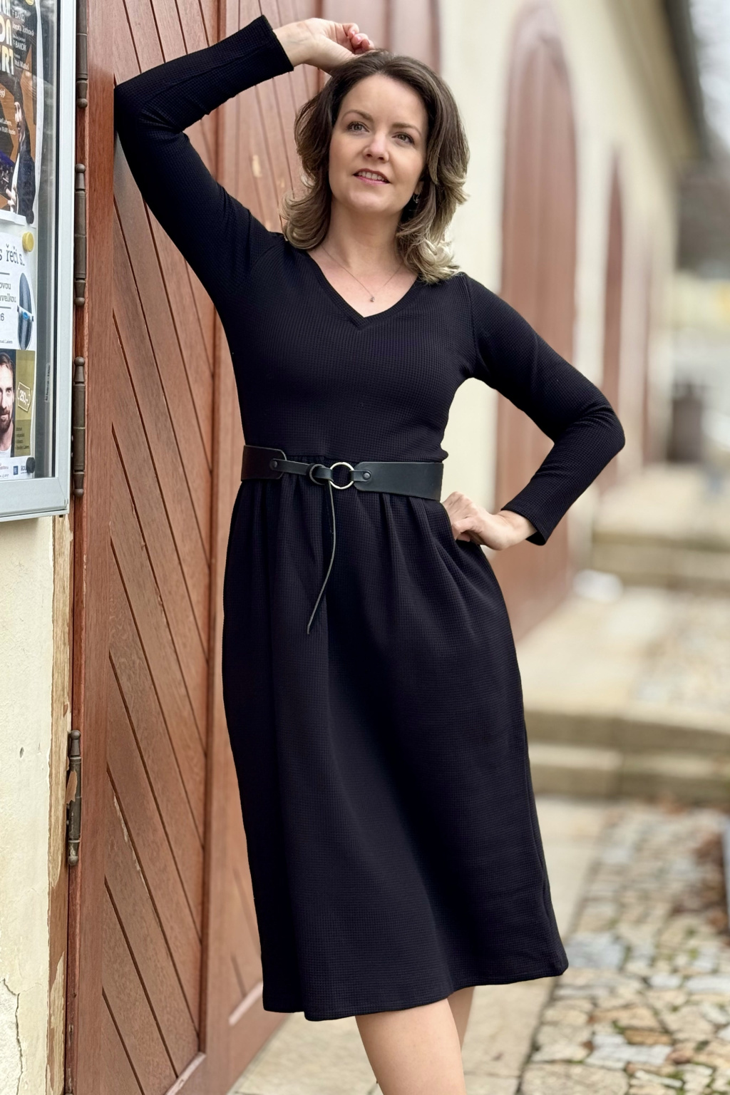 Vaflové bio bavlněné šaty Klasik - Zarina - černá - krátké / midi
