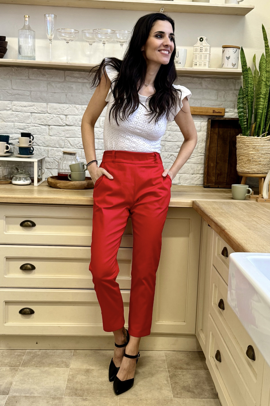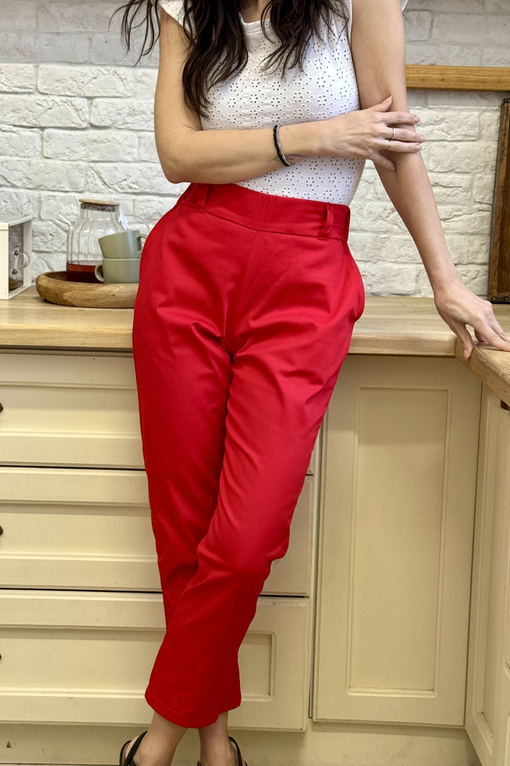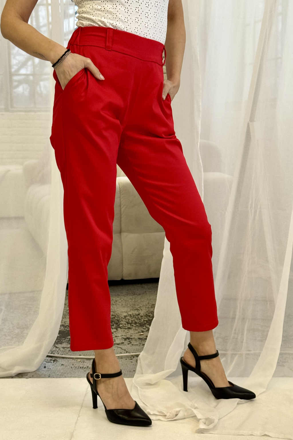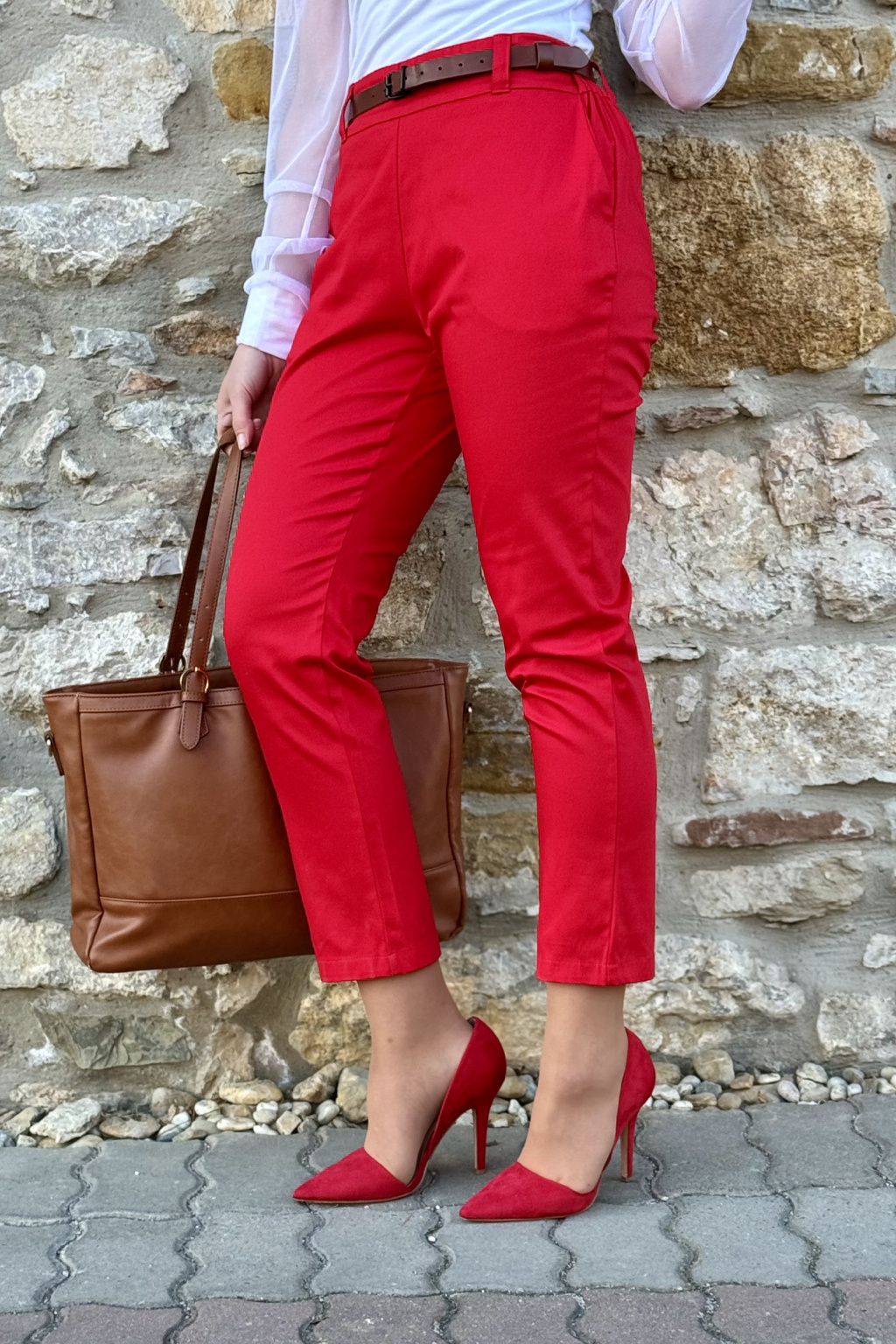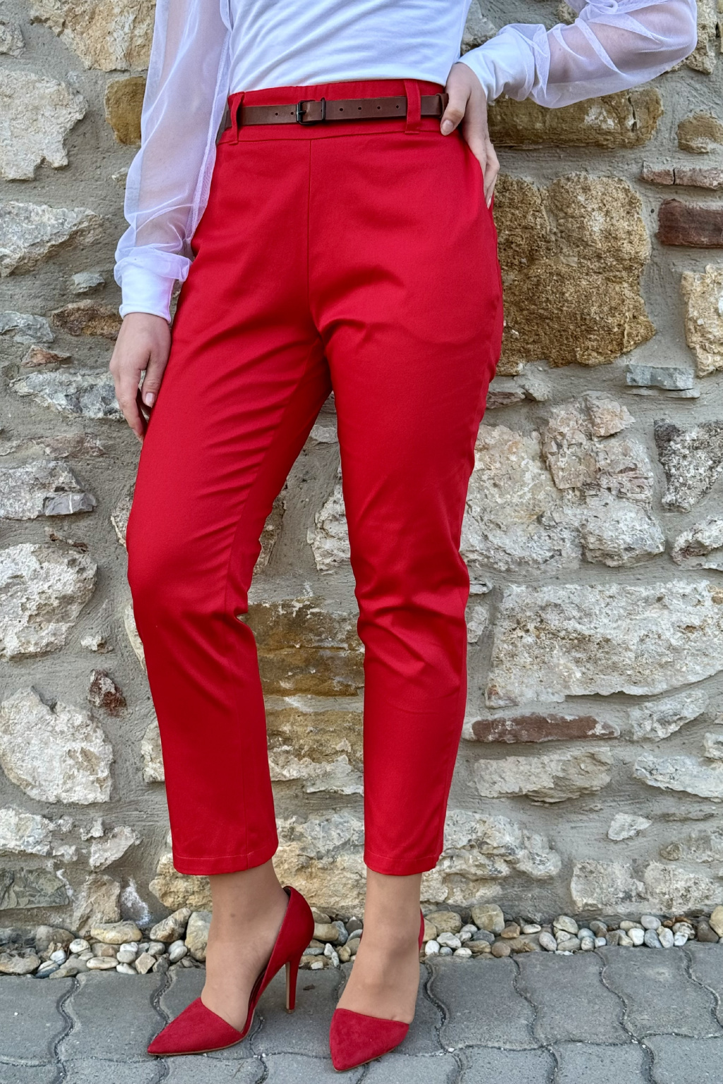 Bavlněné strečové kalhoty Lina - červená