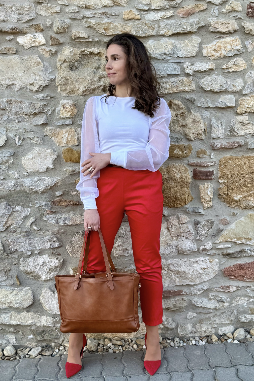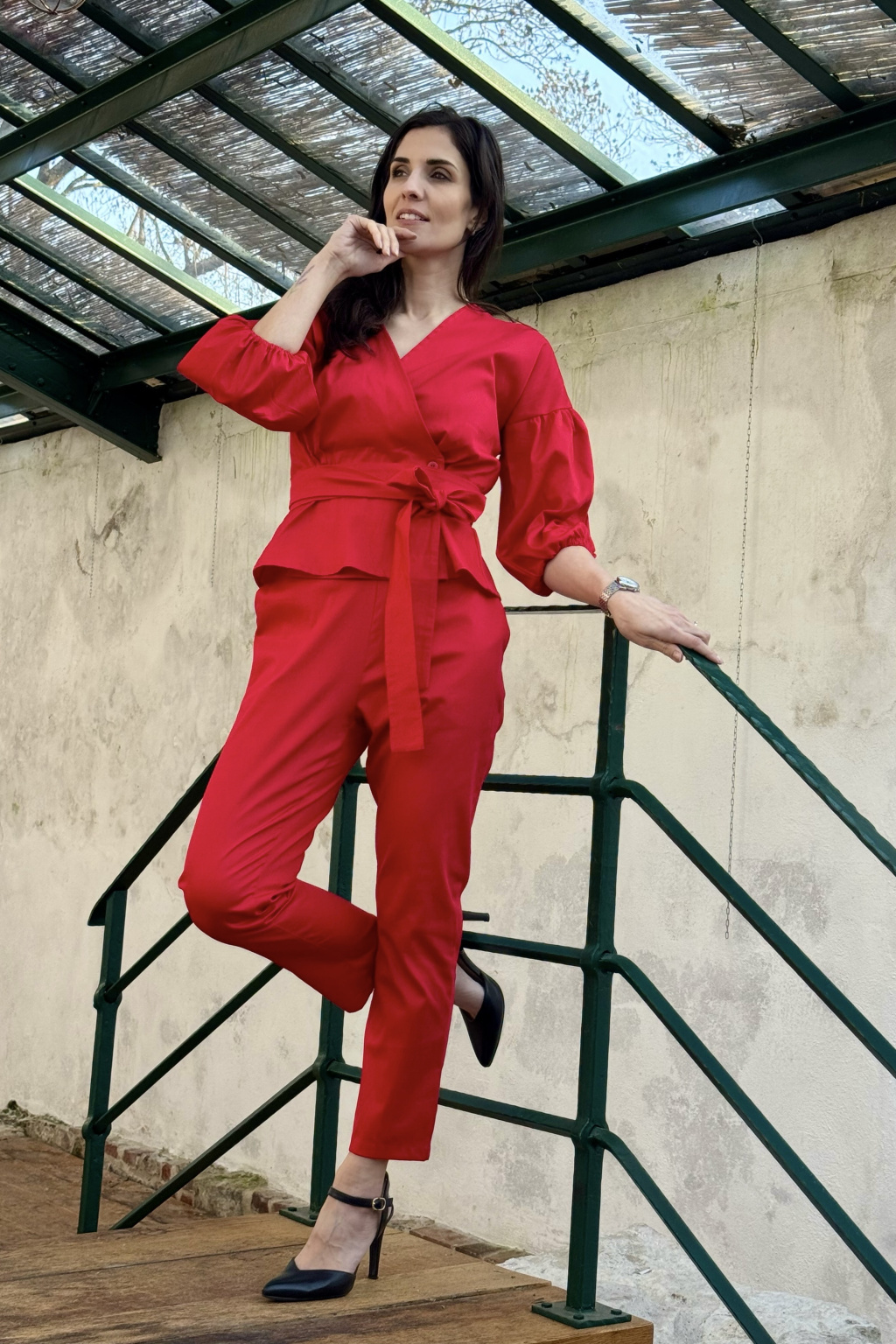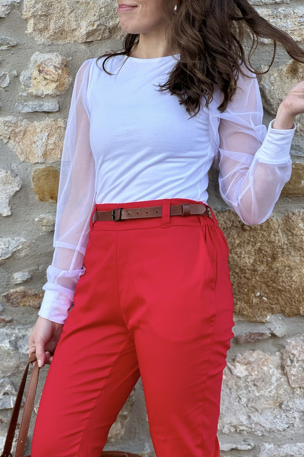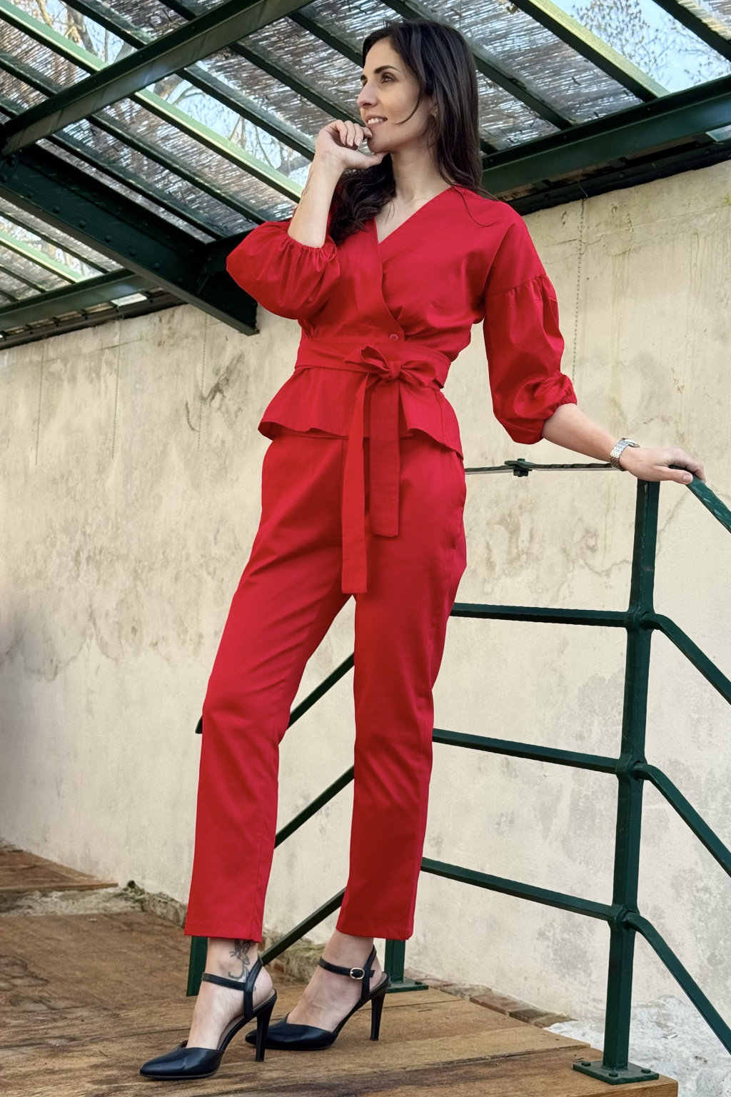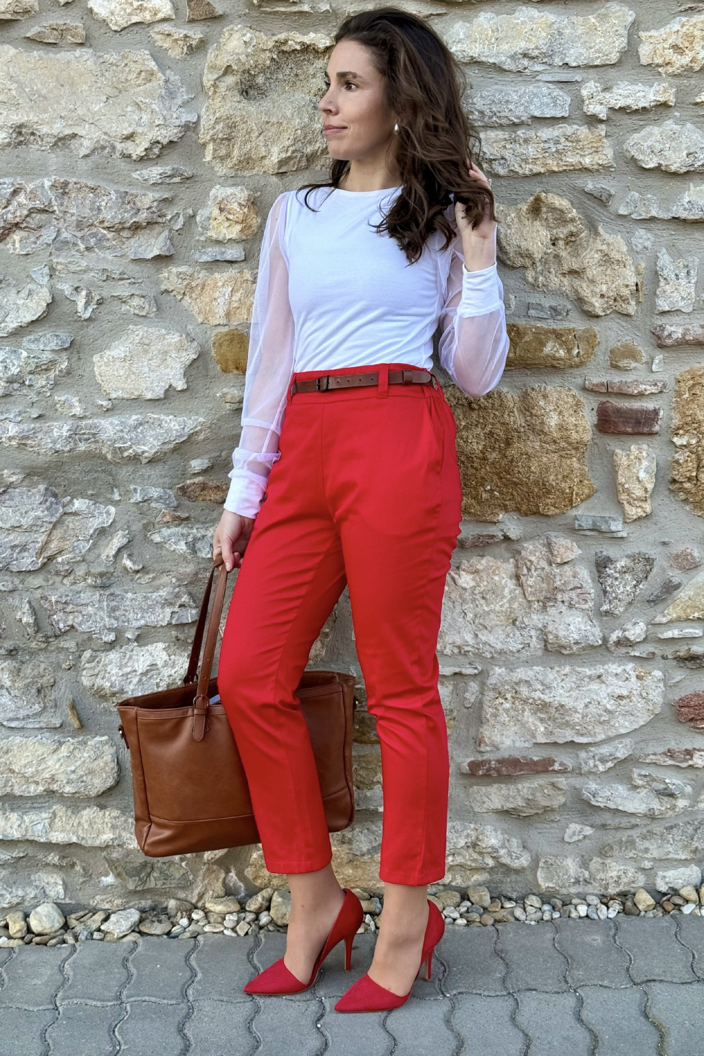 Bavlněné strečové kalhoty Lina - červená
