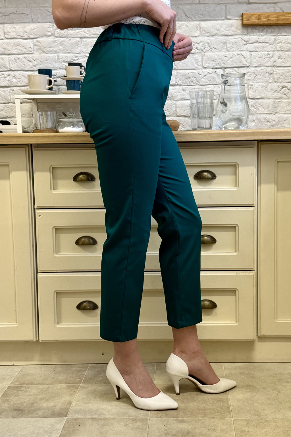 Bavlněné strečové kalhoty Lina - smaragdově zelená - 3 týdny
