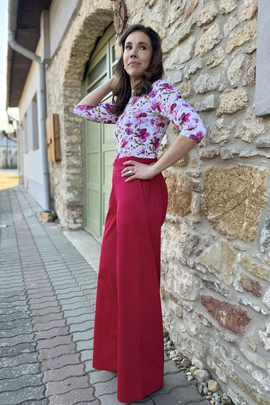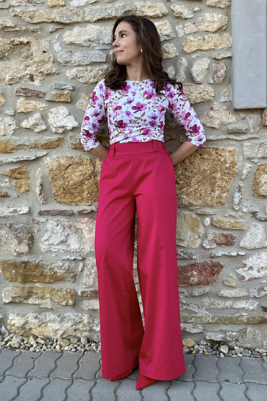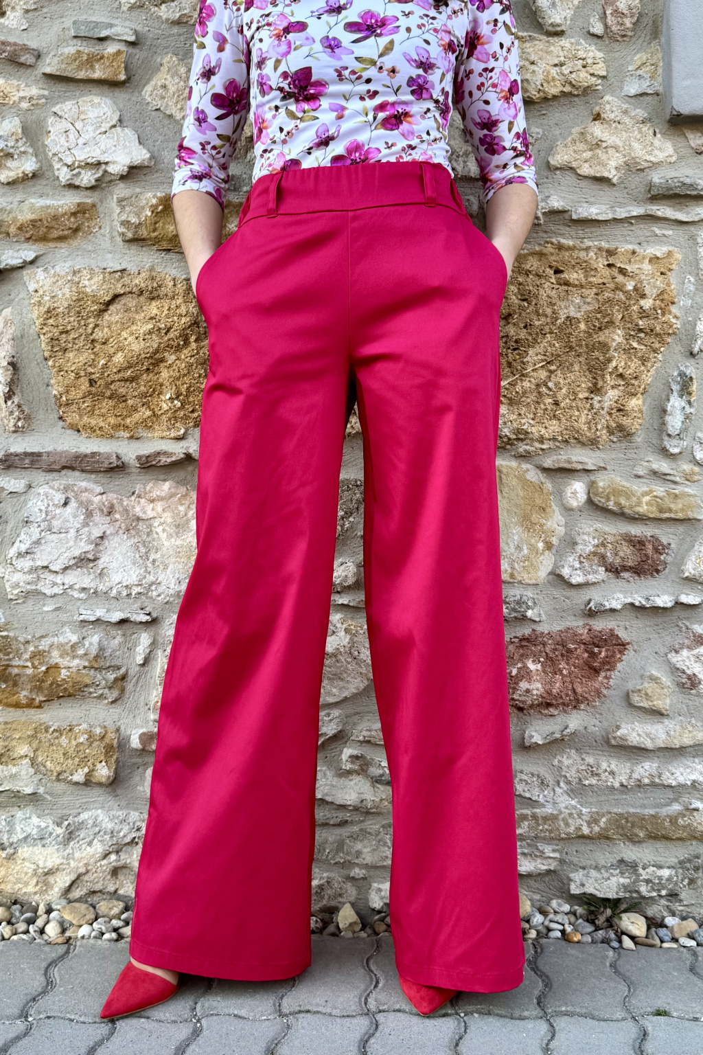 Bavlněné strečové široké kalhoty - magenta