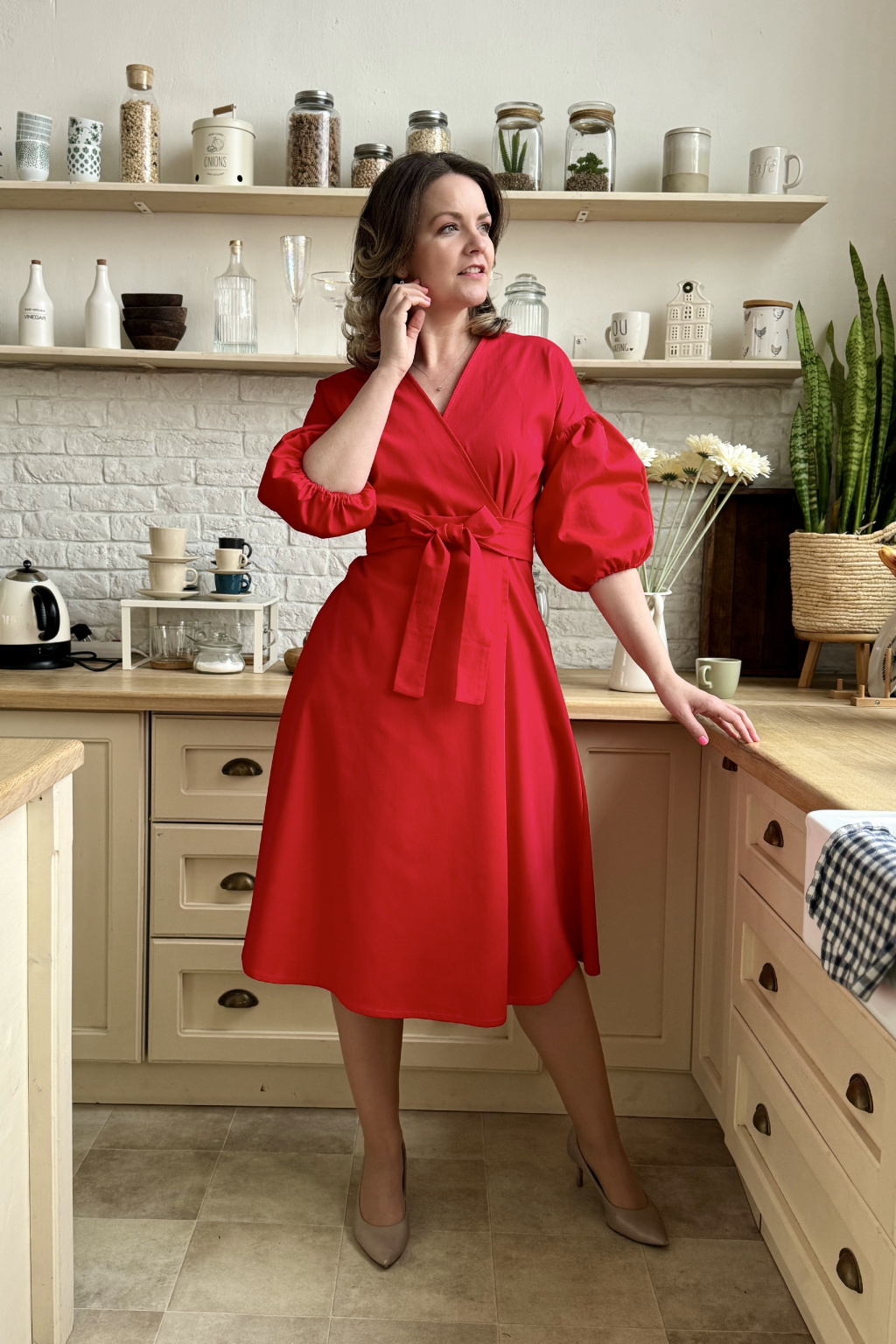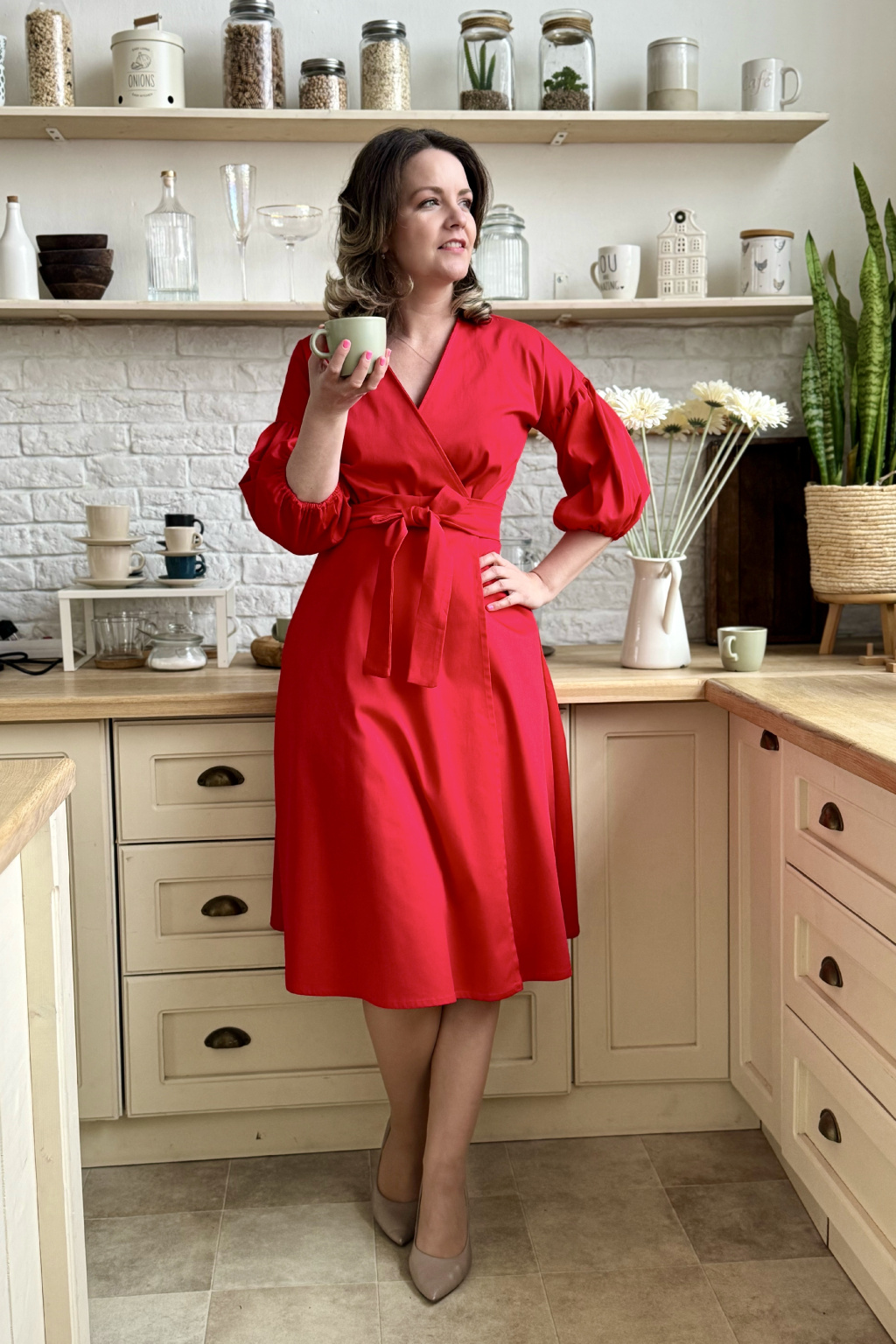 Bavlněné strečové zavinovací šaty Mirabela - červená - 3 týdny