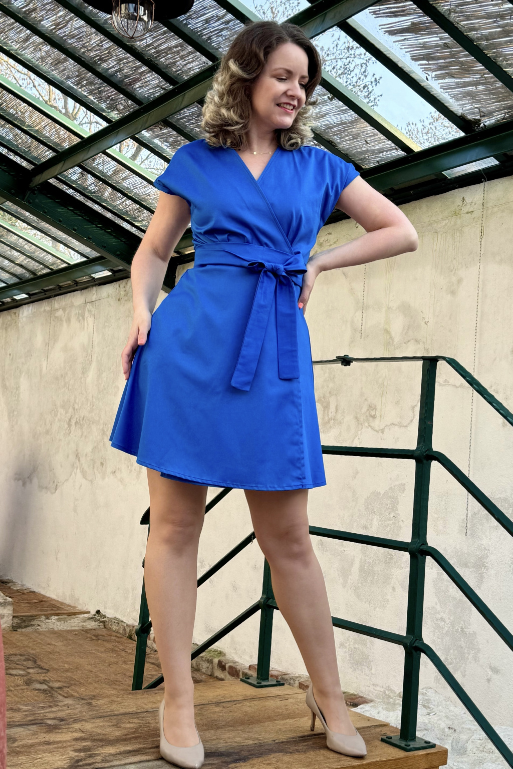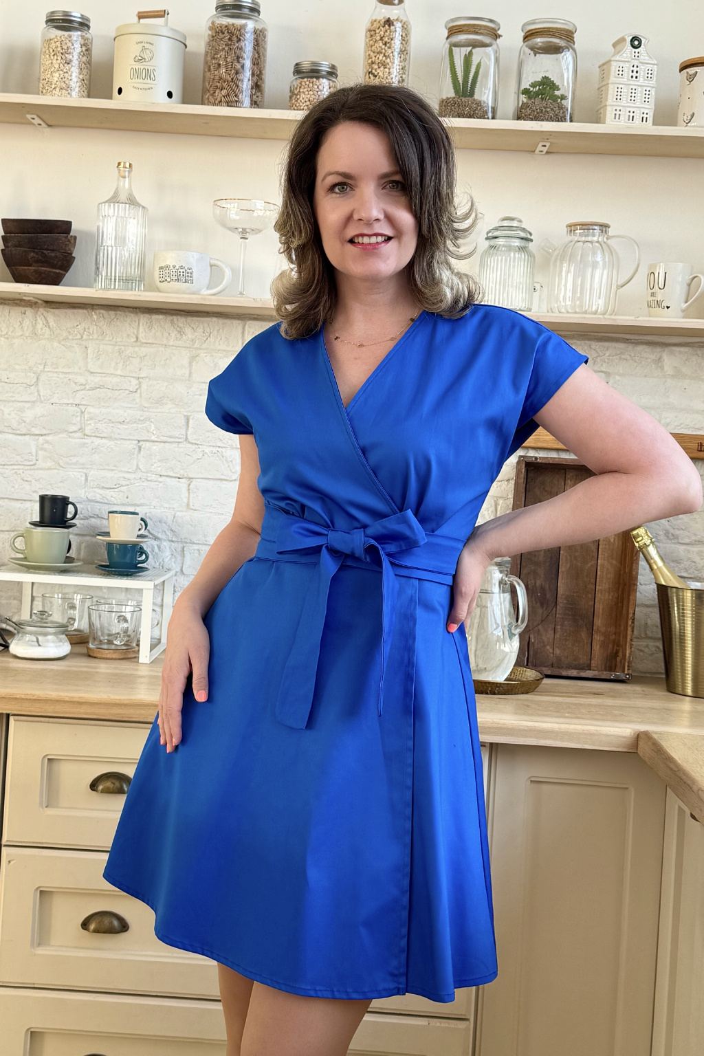 Bavlněné strečové zavinovací šaty Mirabela - kobaltová