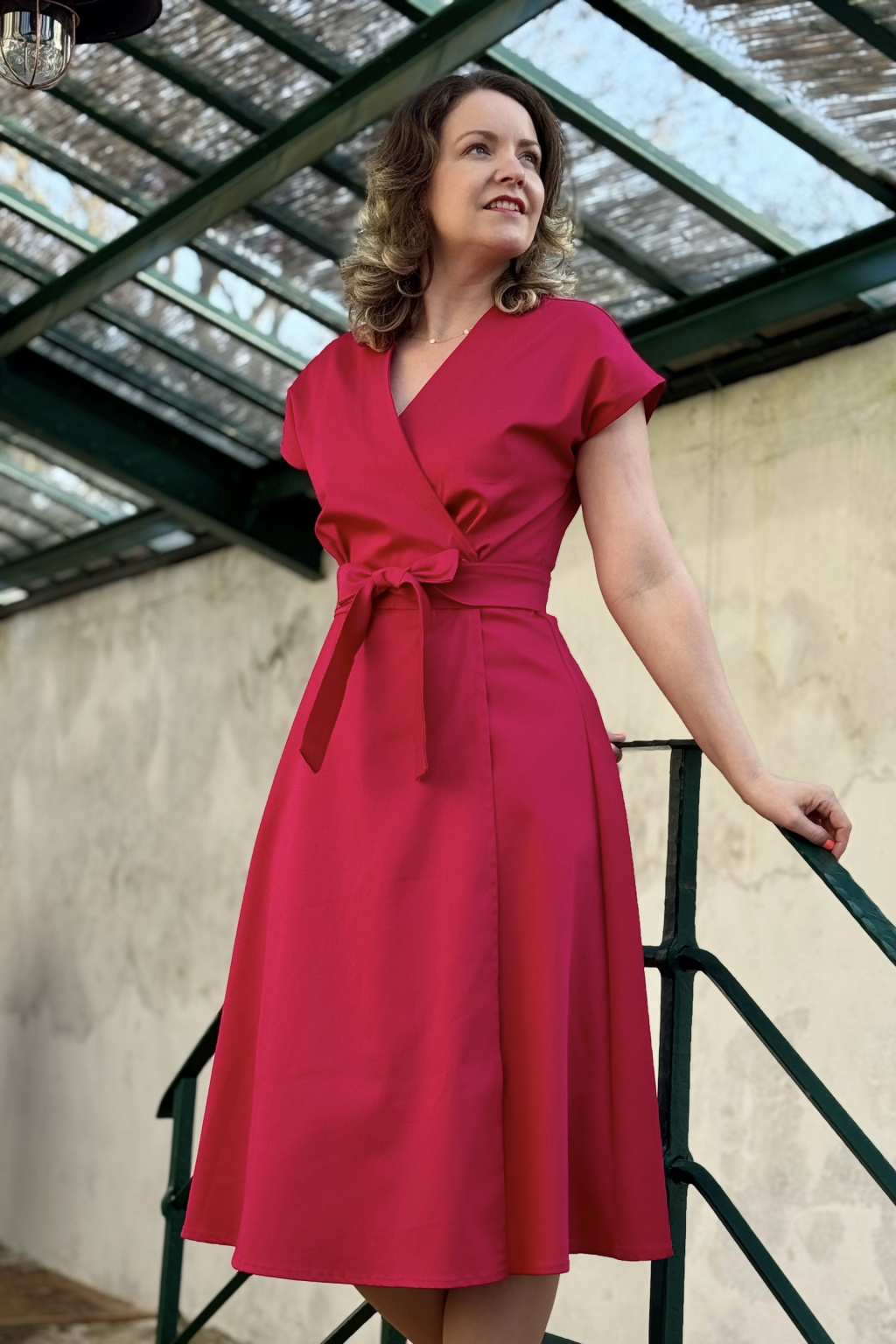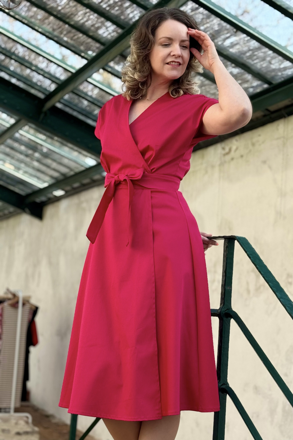 Bavlněné strečové zavinovací šaty Mirabela - magenta