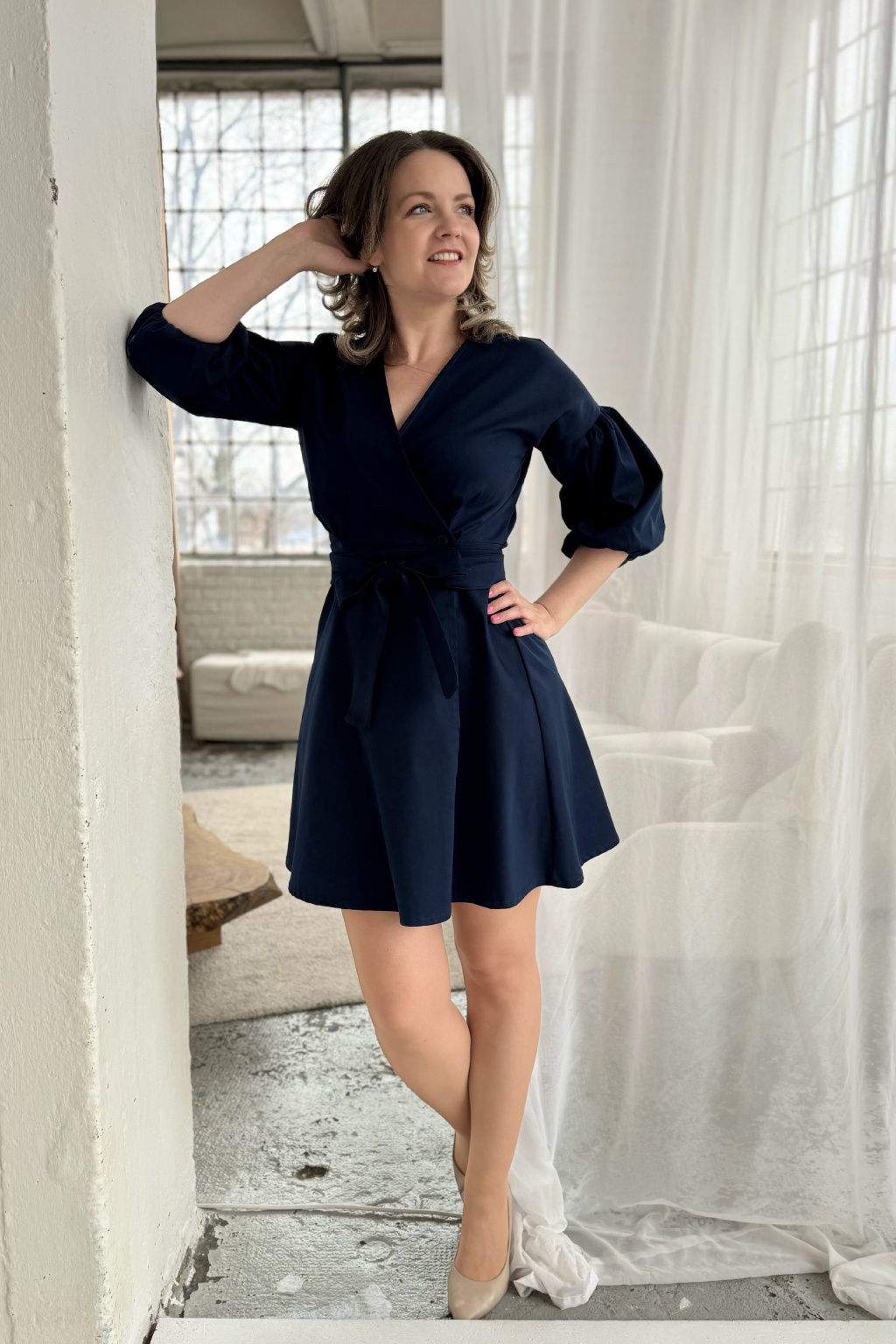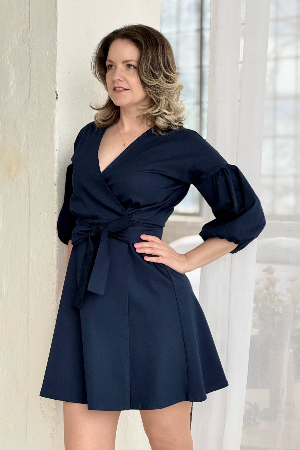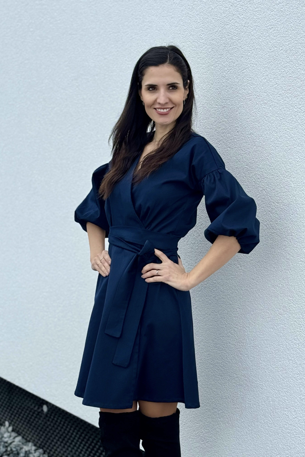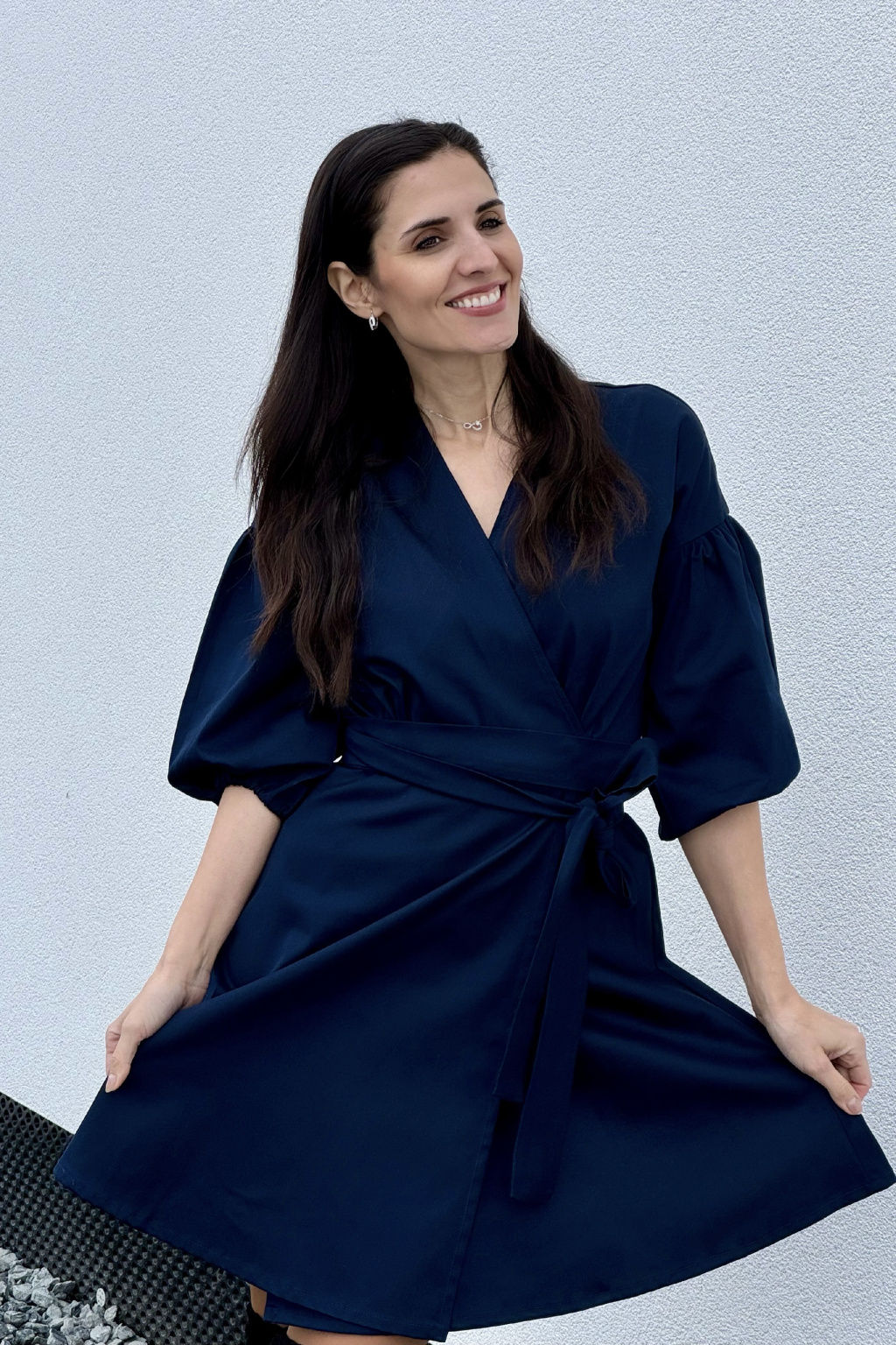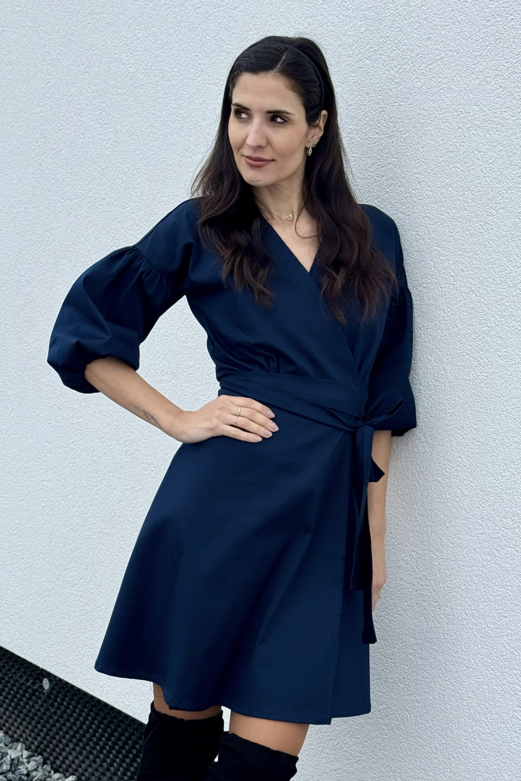 Bavlněné strečové zavinovací šaty Mirabela - námořnická modrá - 3 týdny