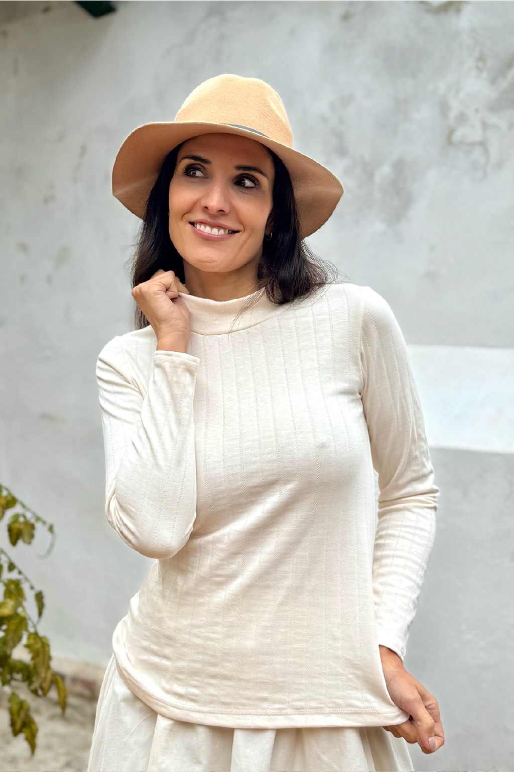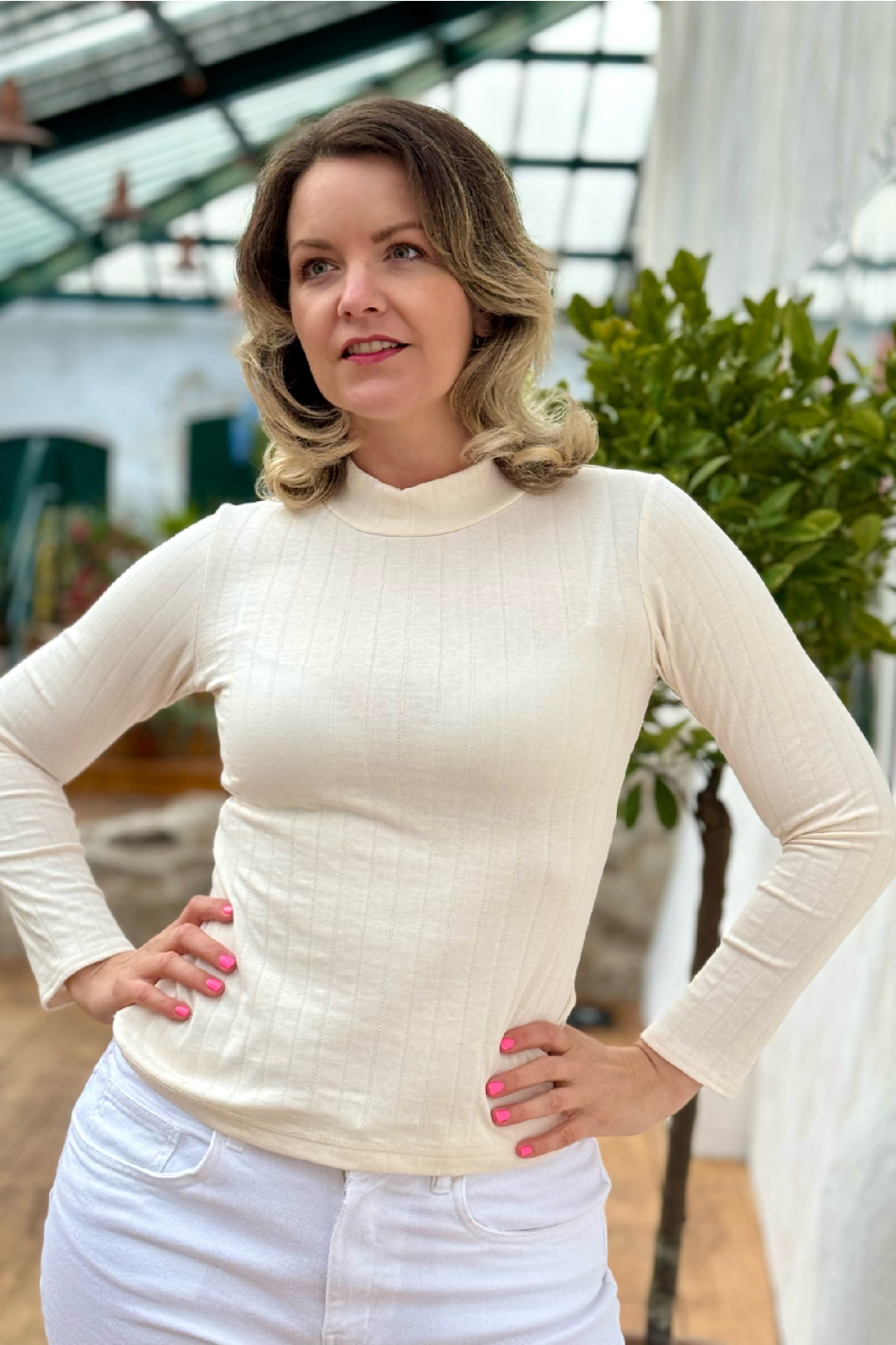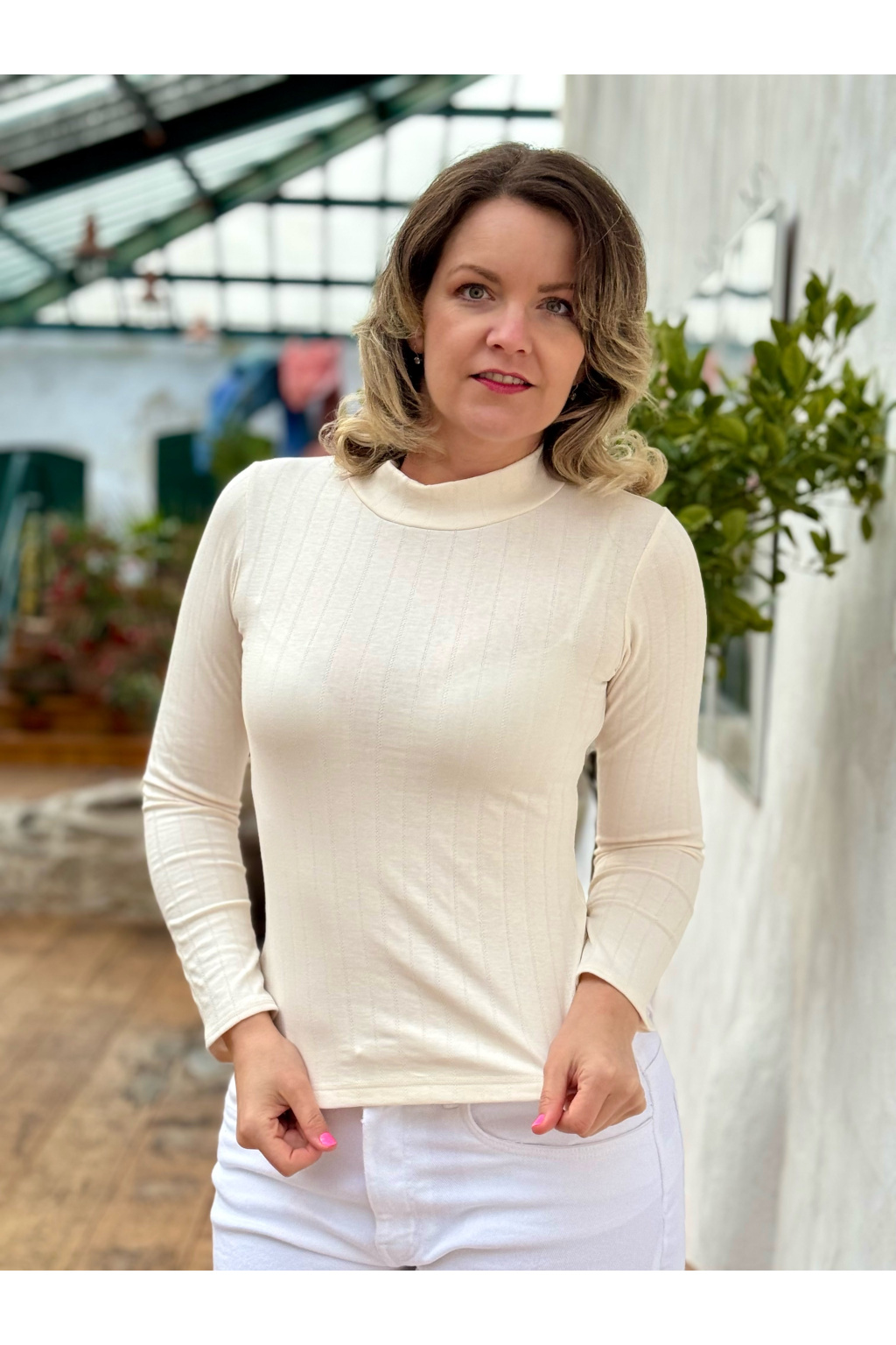Bavlněné tričko Klasik - pointelle - smetanová - stojáček