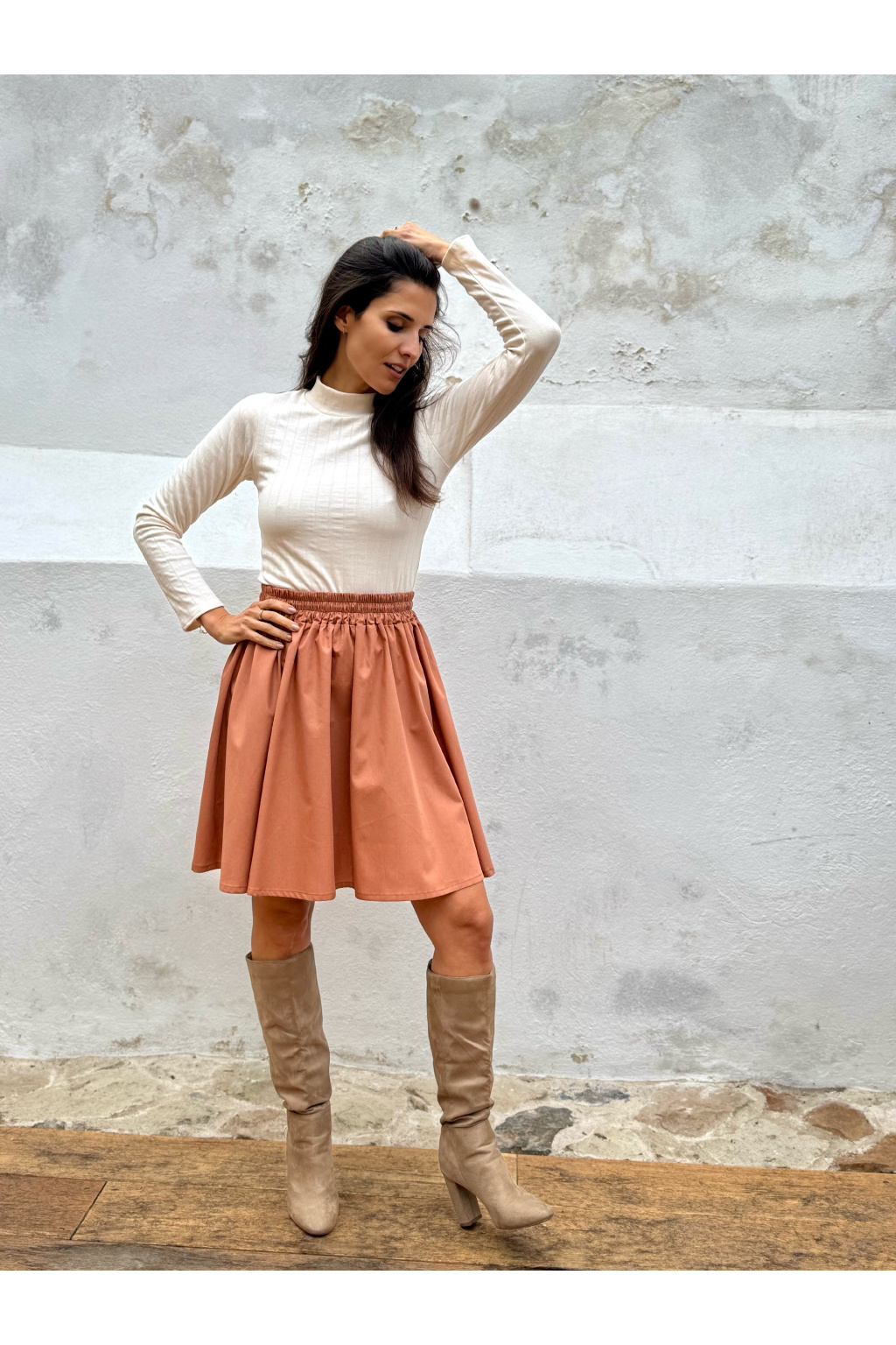 Modelka má na sobě: tričko vel. XS, stojáček, dlouhý rukáv.