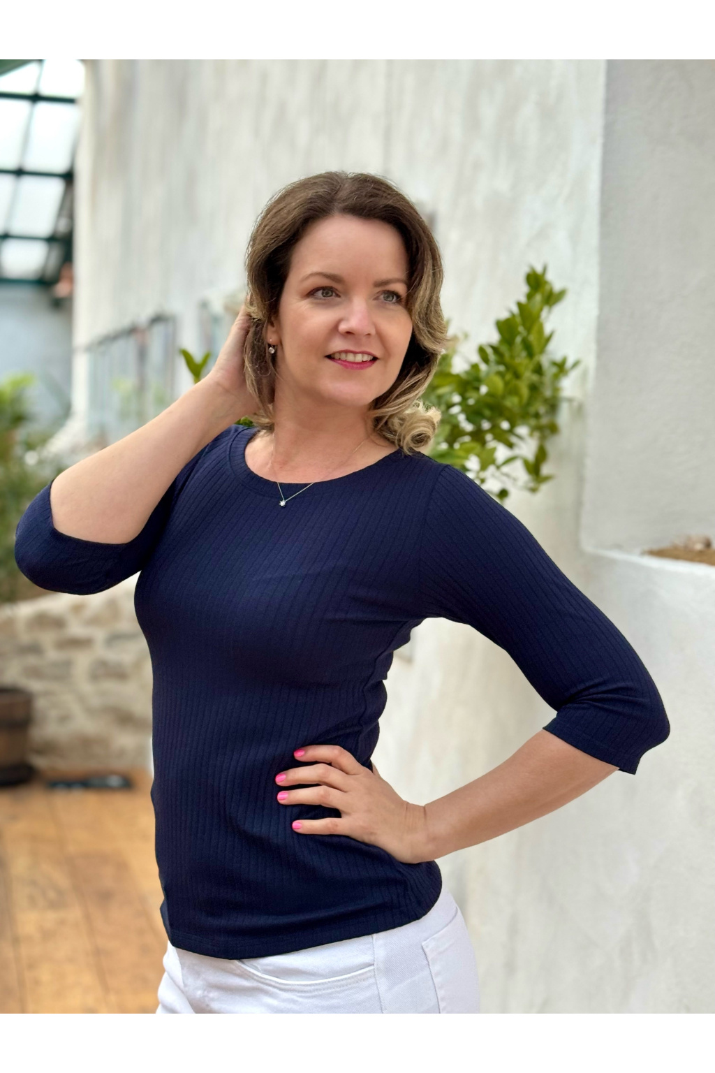 Bavlněné tričko Klasik - širší žebro - námořnická modrá