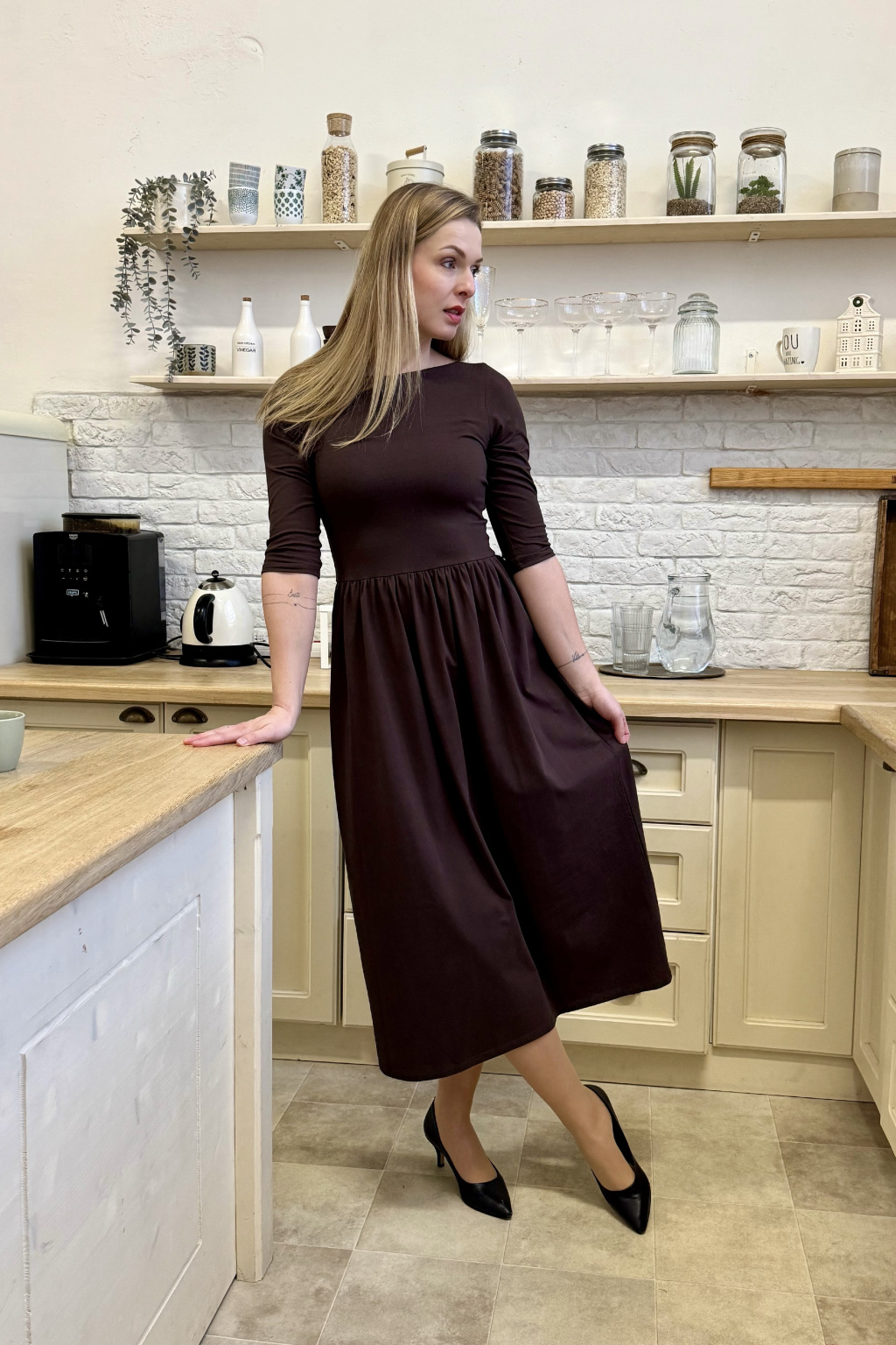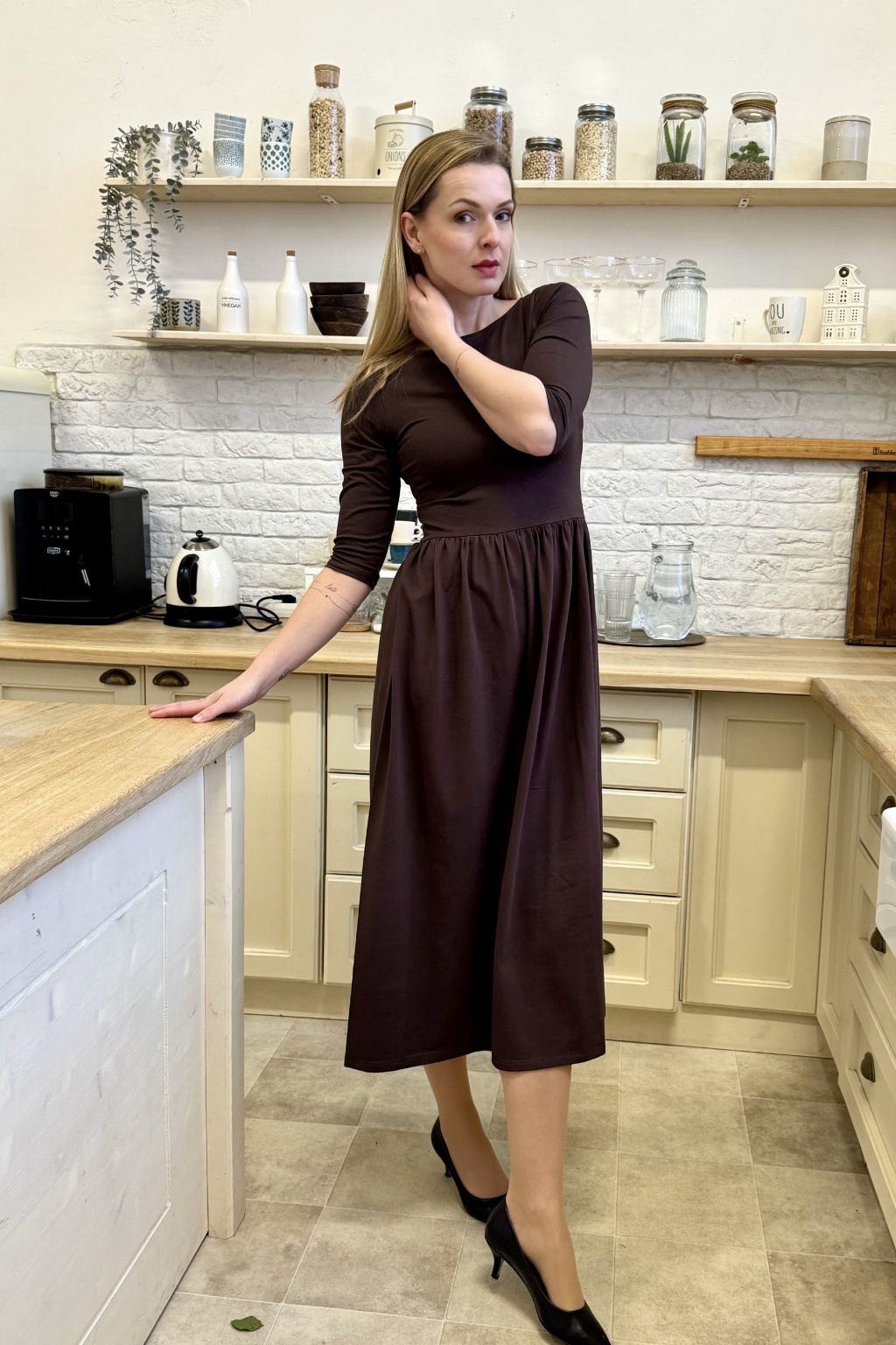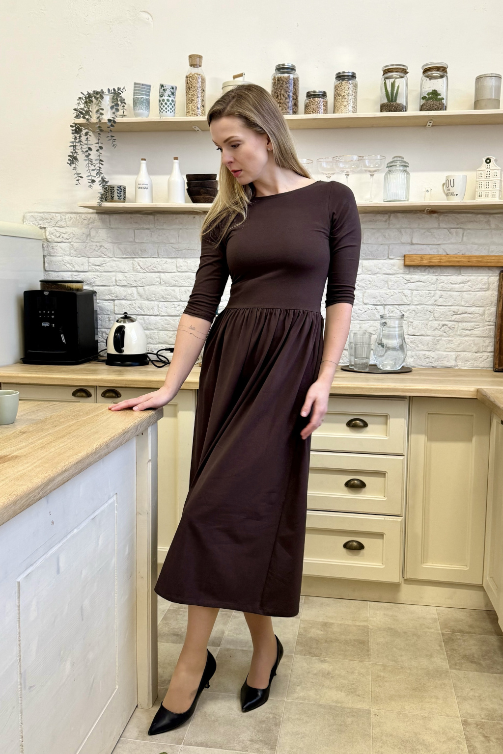Bio bavlněné šaty Klasik - čokoládová - krátké / midi