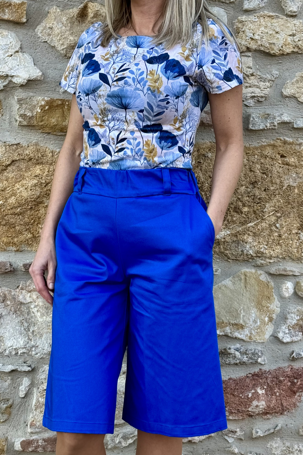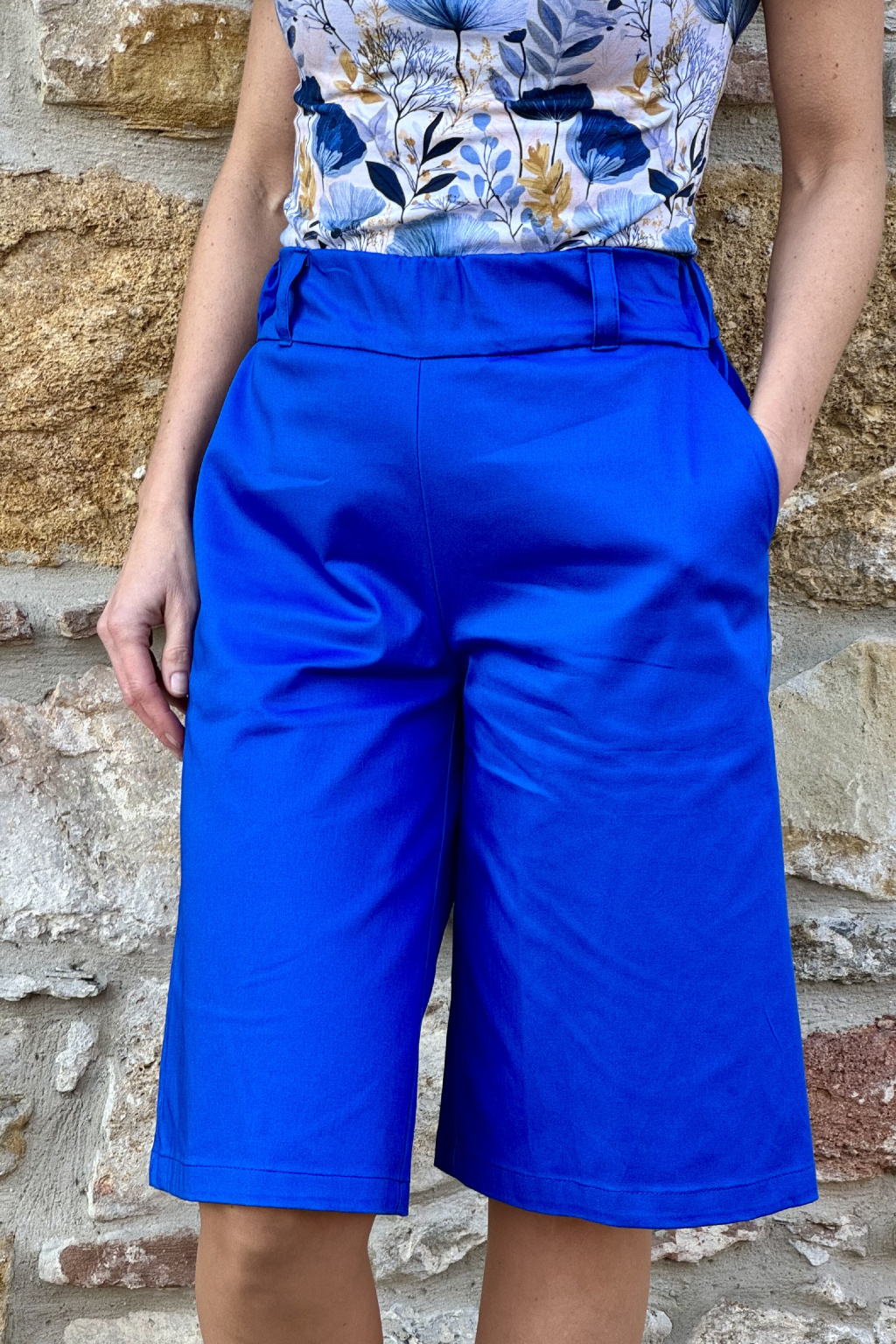 Delší bavlněné strečové kraťasy - kobaltová