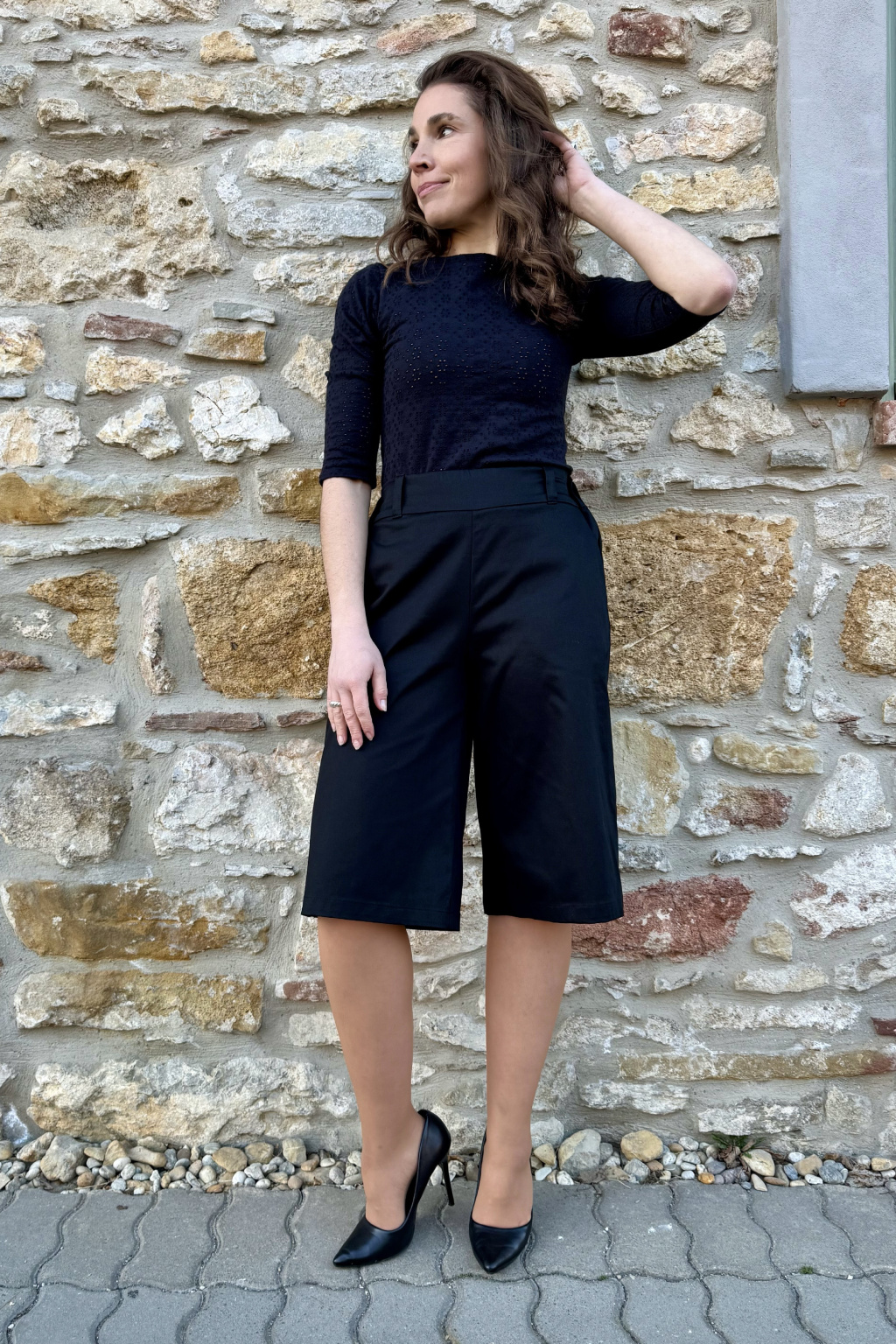 Delší bavlněné strečové kraťasy - černá