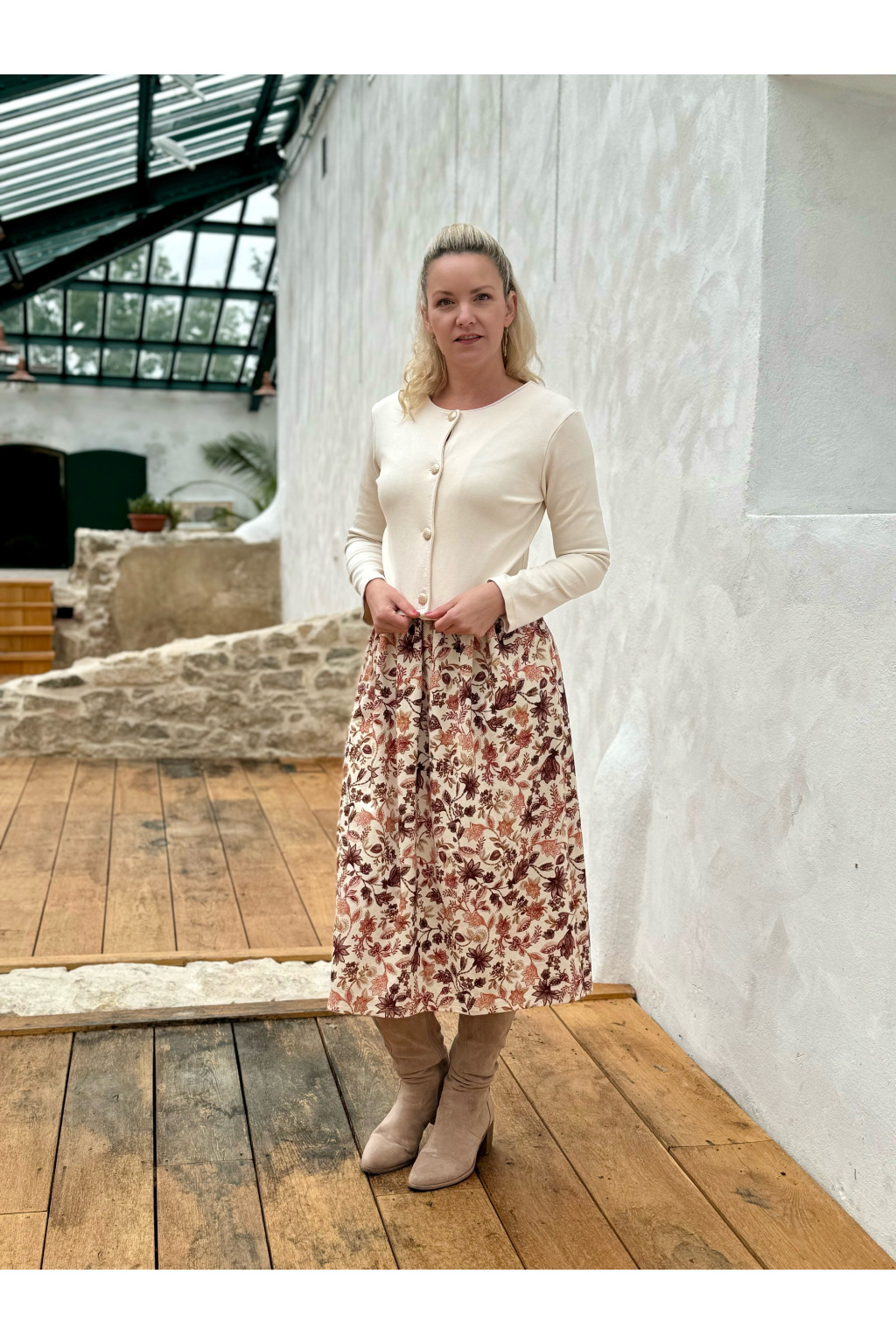 Typ sukně: řasená nebo půlkolová