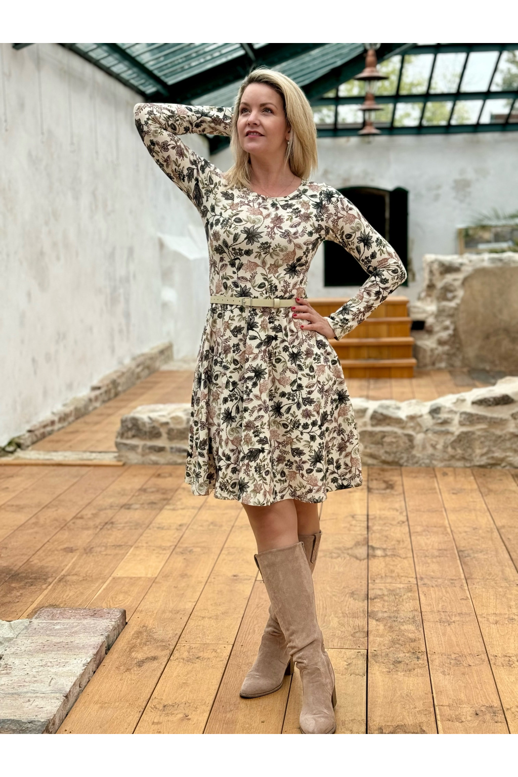 Modelka na fotce má na sobě: šaty vel. XS, krátké s délkou 95 cm, půlkulovou sukni, kulatý výstřih, dlouhý rukáv, je vysoká 171 cm.