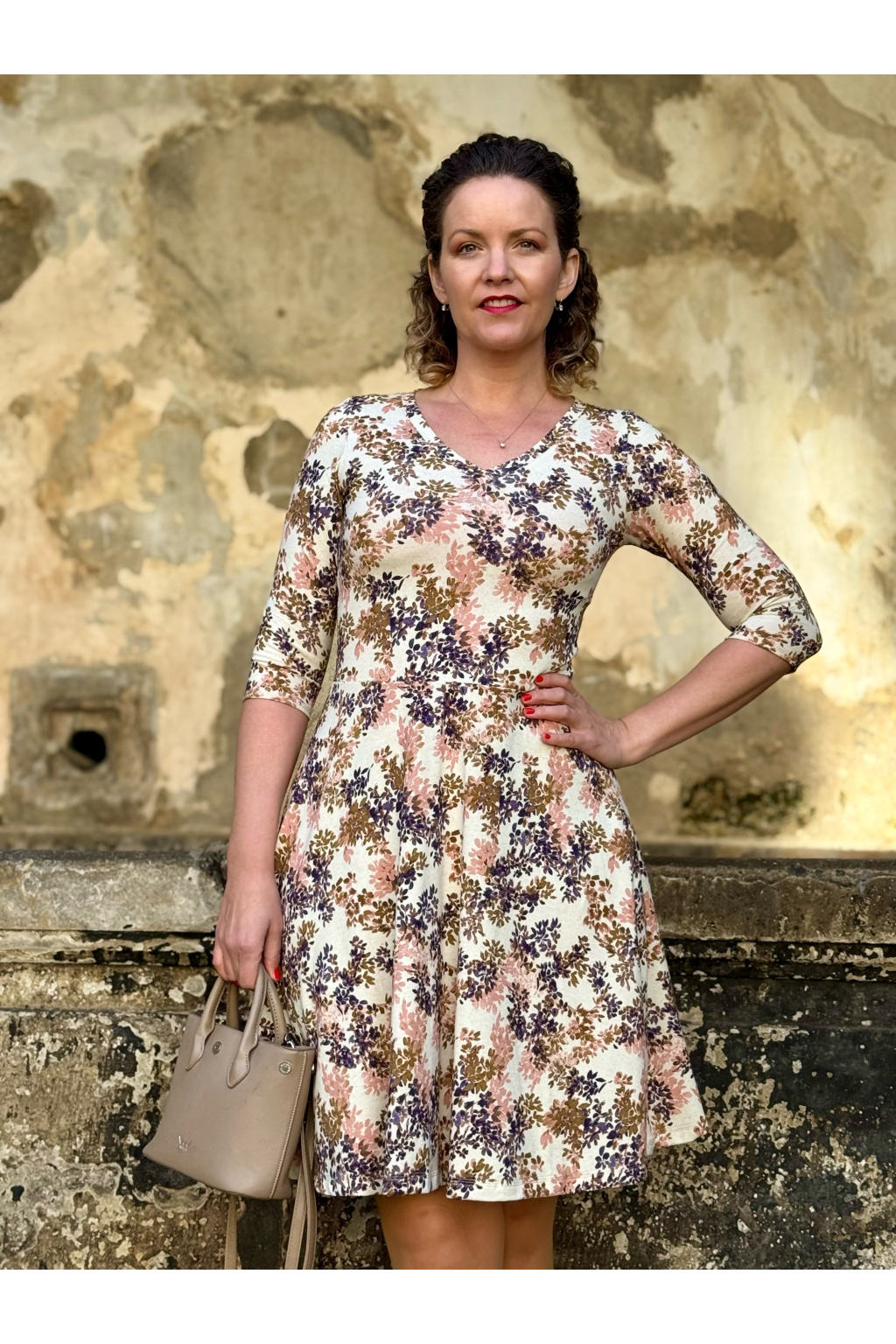 Modelka na fotce má na sobě: šaty vel. XS, krátké s délkou 95 cm, řasenou sukni, kulatý výstřih, dlouhý rukáv, je vysoká 170 cm.