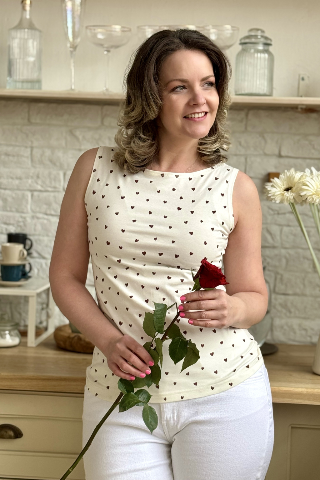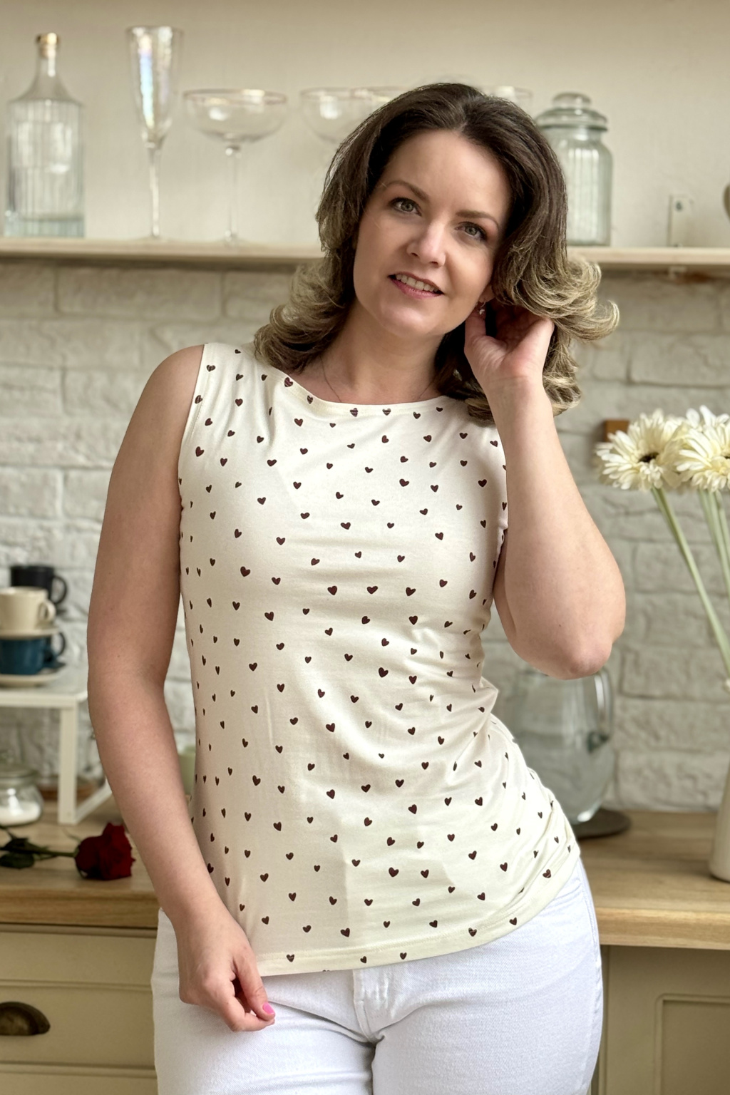 | Vzor: | srdíčka na smetanovém podkladu |