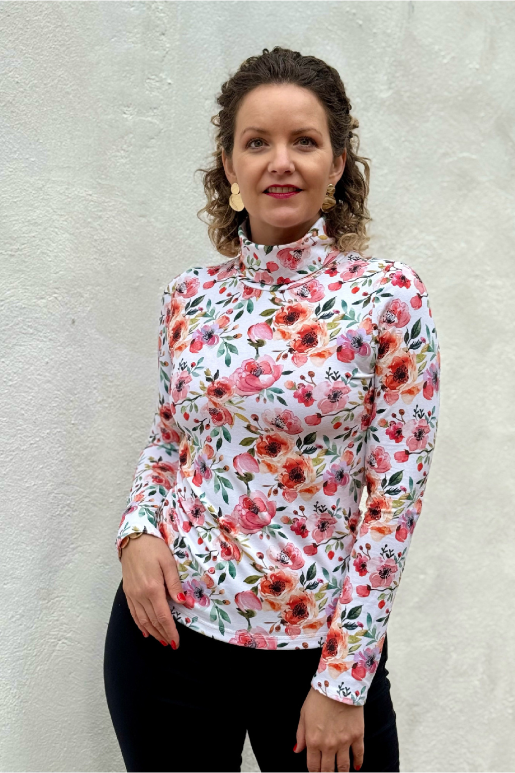Modelka na fotce má na sobě: rolák vel. S, dlouhý rukáv.